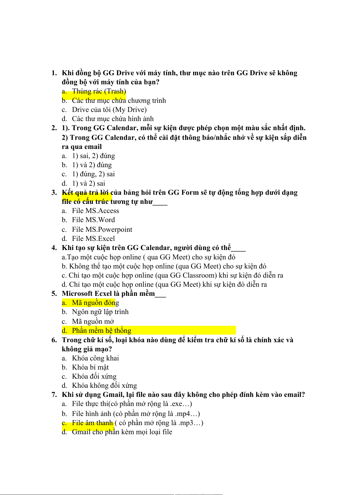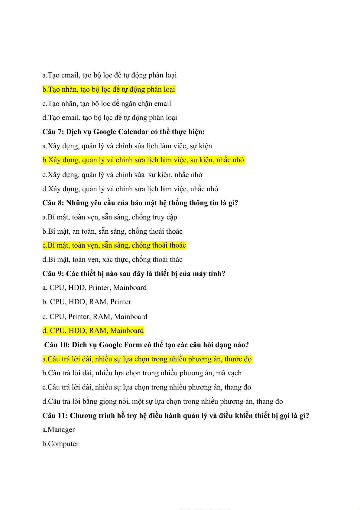 Câu 5: Dịch vụ Google Clalendar có thể thực hiện: a.Chia sẻ qua Google Meet b.Chia sẻ qua mail c.Chia sẻ qua email d.Chia sẻ qua Google Drive