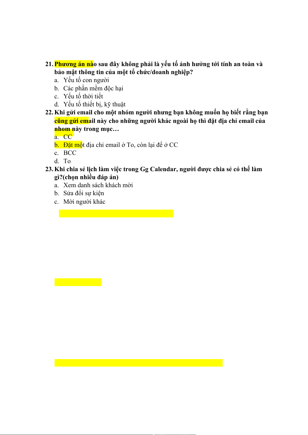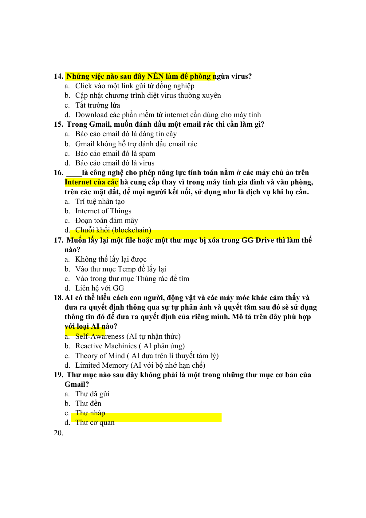 19. Thư mục nào sau đây không phải là một trong những thư mục cơ bản của Gmail? a. Thư đã gửi b. Thư đến c. Thư nháp d. Thư cơ quan 20.