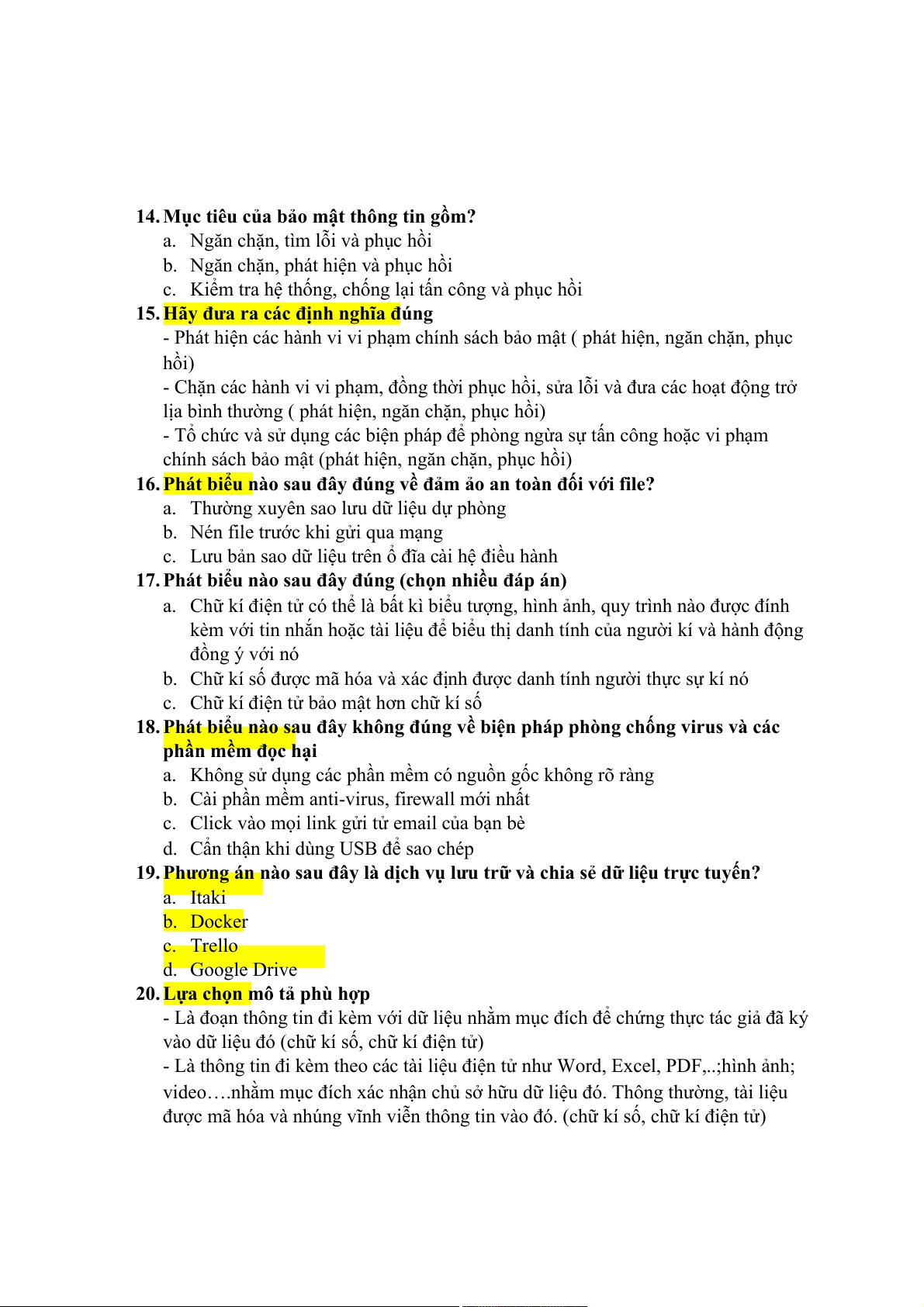 19. Phương án nào sau đây là dịch vụ lưu trữ và chia sẻ dữ liệu trực tuyến? a. Itaki b. Docker c. Trello d. Google Drive