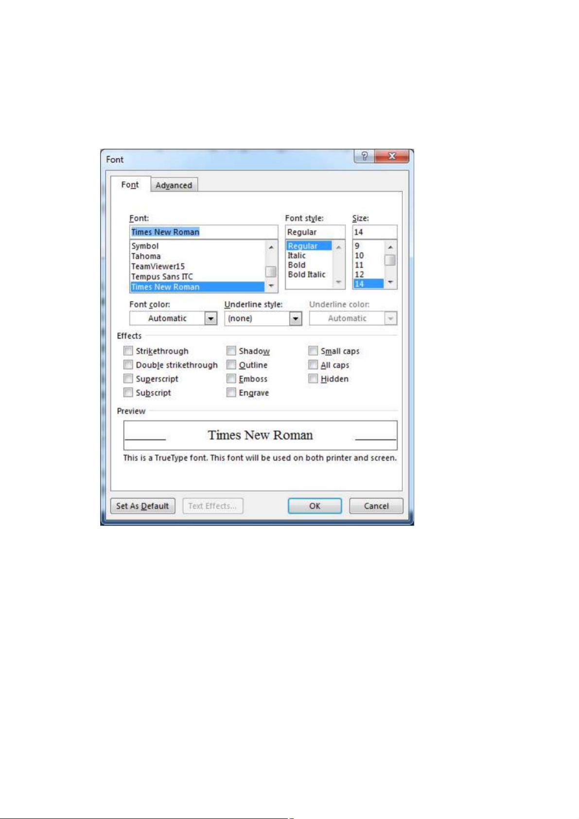 * Nắm vững tất cả các tính năng có trong thẻ Font trong hộp thoại Font.