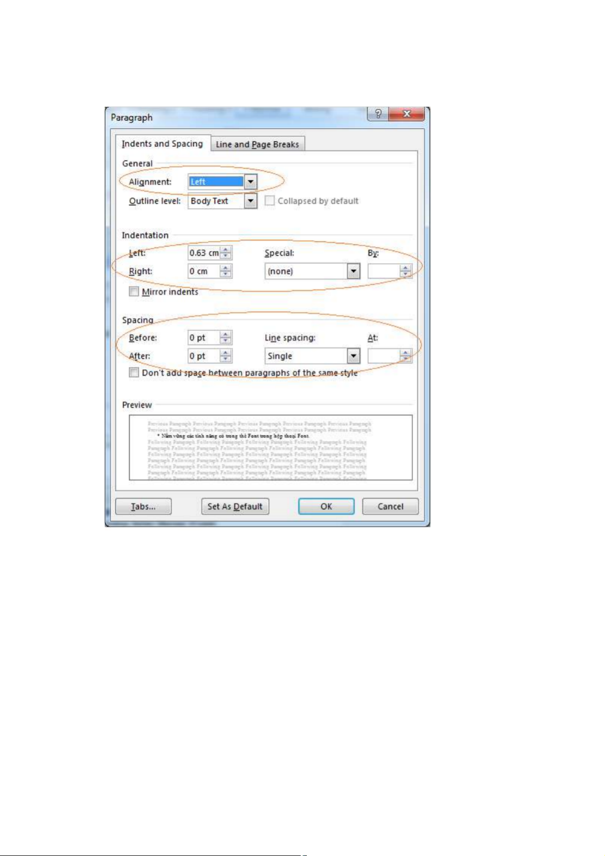 * Nắm vững các tính năng sau trong thẻ Indents and Spacing trong hộp thoại