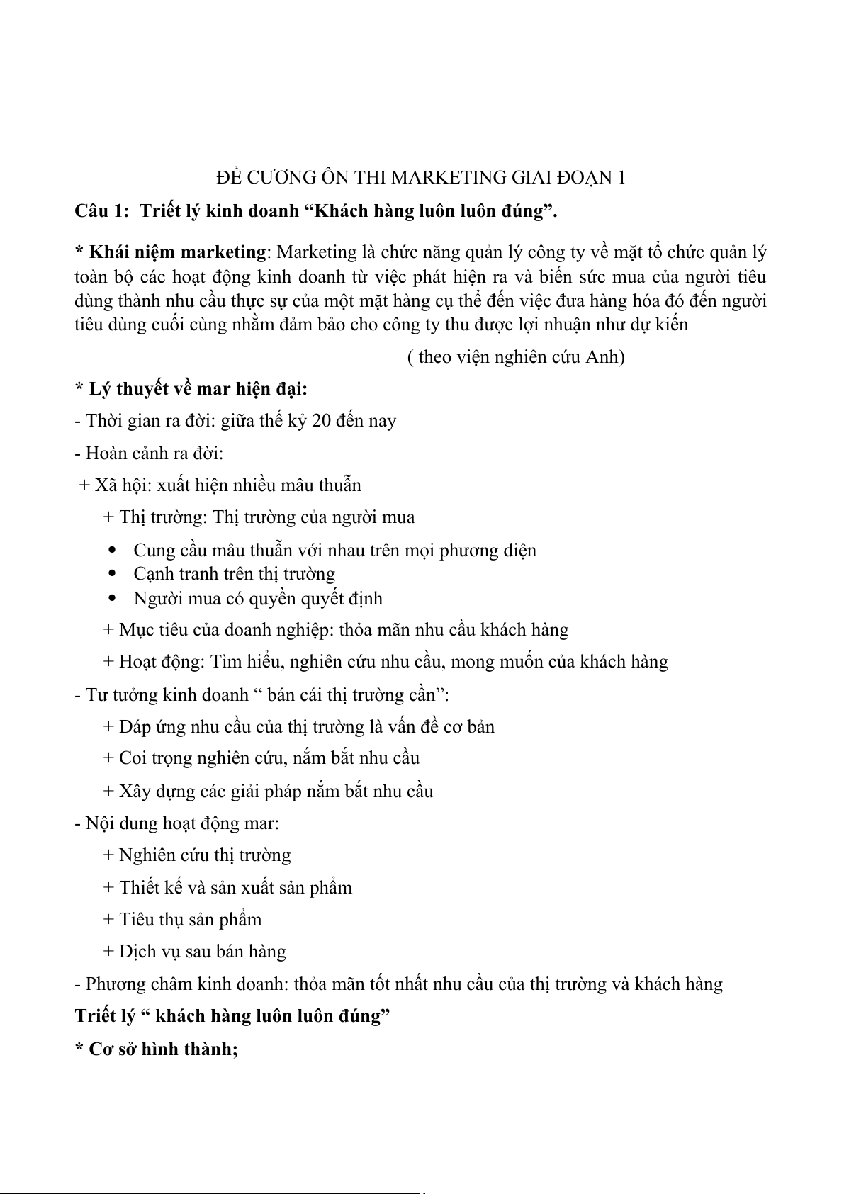 ĐỀ CƯƠNG ÔN THI MARKETING GIAI ĐOẠN 1