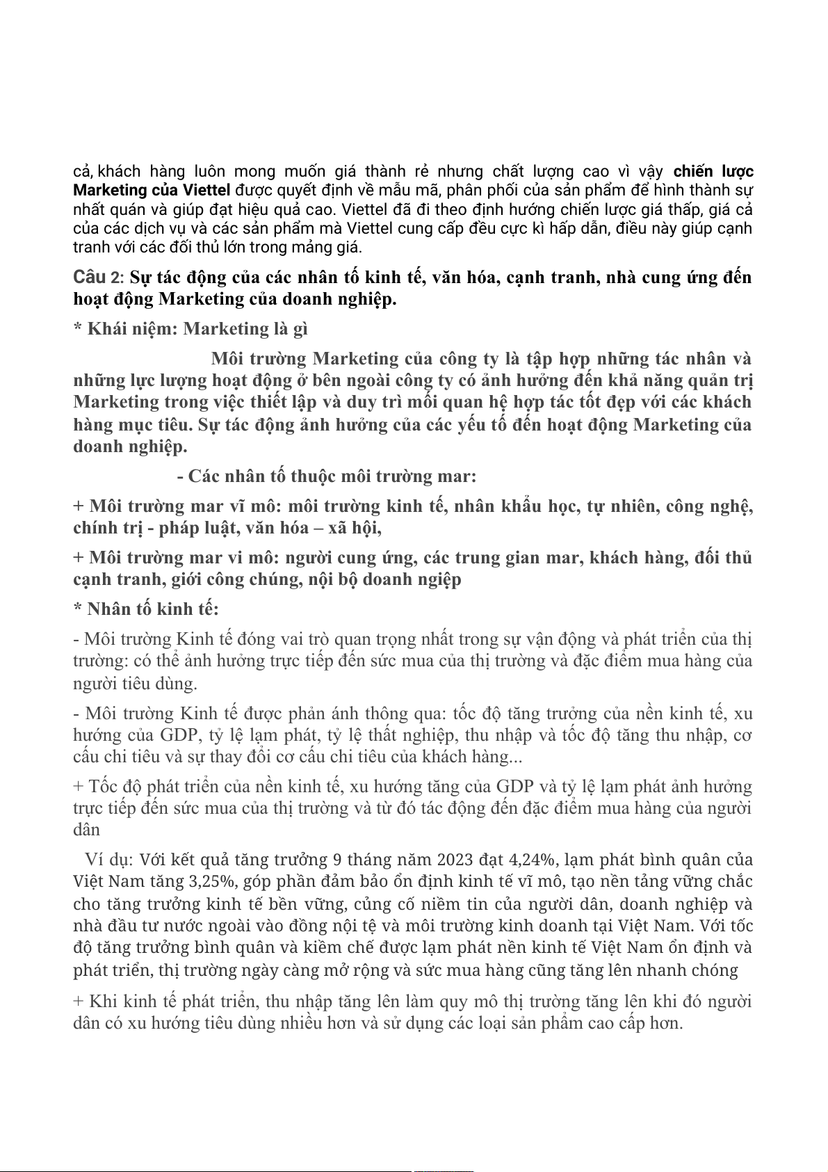 Câu 2: Sự tác động của các nhân tố kinh tế, văn hóa, cạnh tranh, nhà cung ứng đến