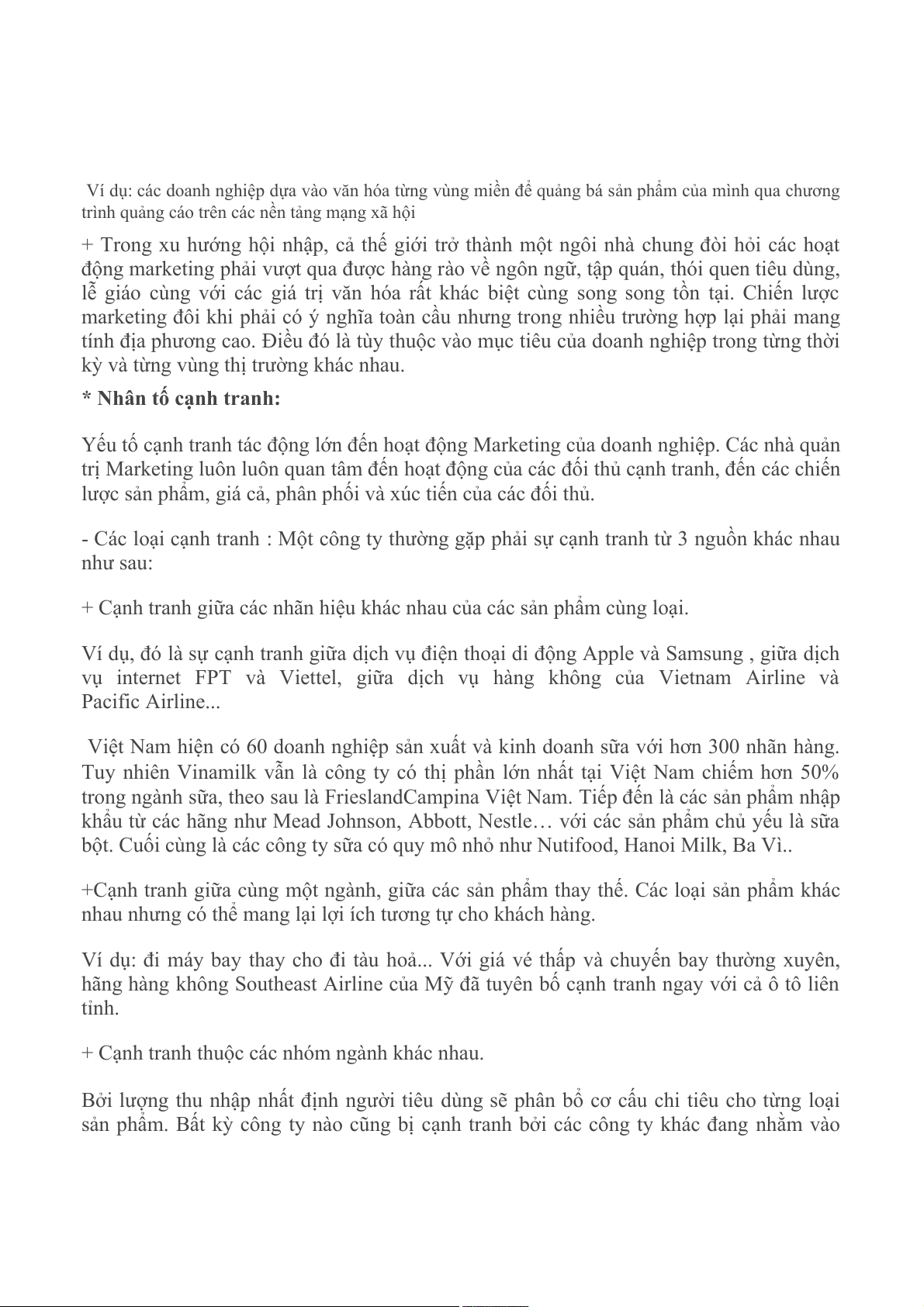 + Môi trường mar vi mô: người cung ứng, các trung gian mar, khách hàng, đối thủ