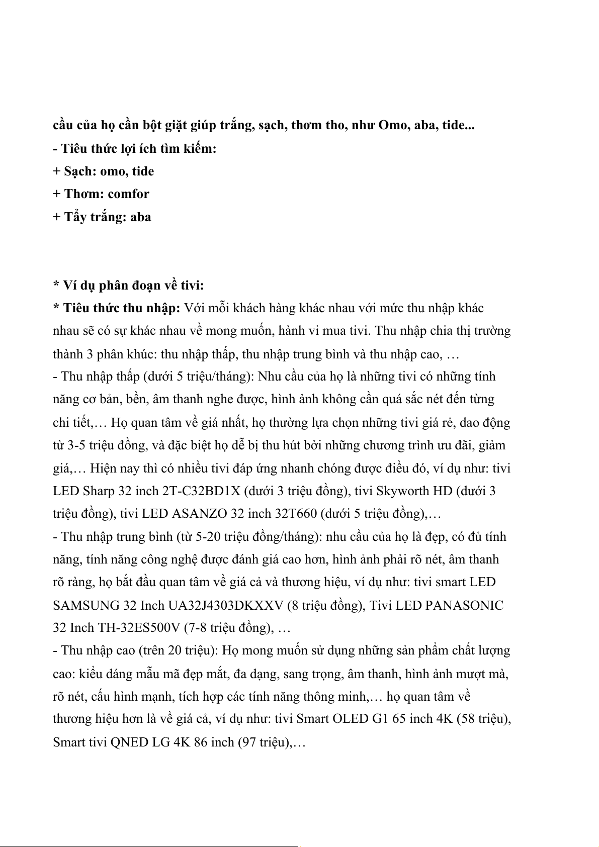hiện việc nghiên cứu kỹ lưỡng về khách hàng trên các phương diện như: đốỉ tượng