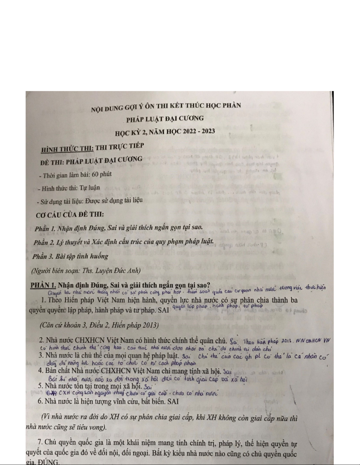 Đề cương ôn thi Kết thúc học phần Pháp luật đại cương - HK2, năm học 2022-2023 - Studocu