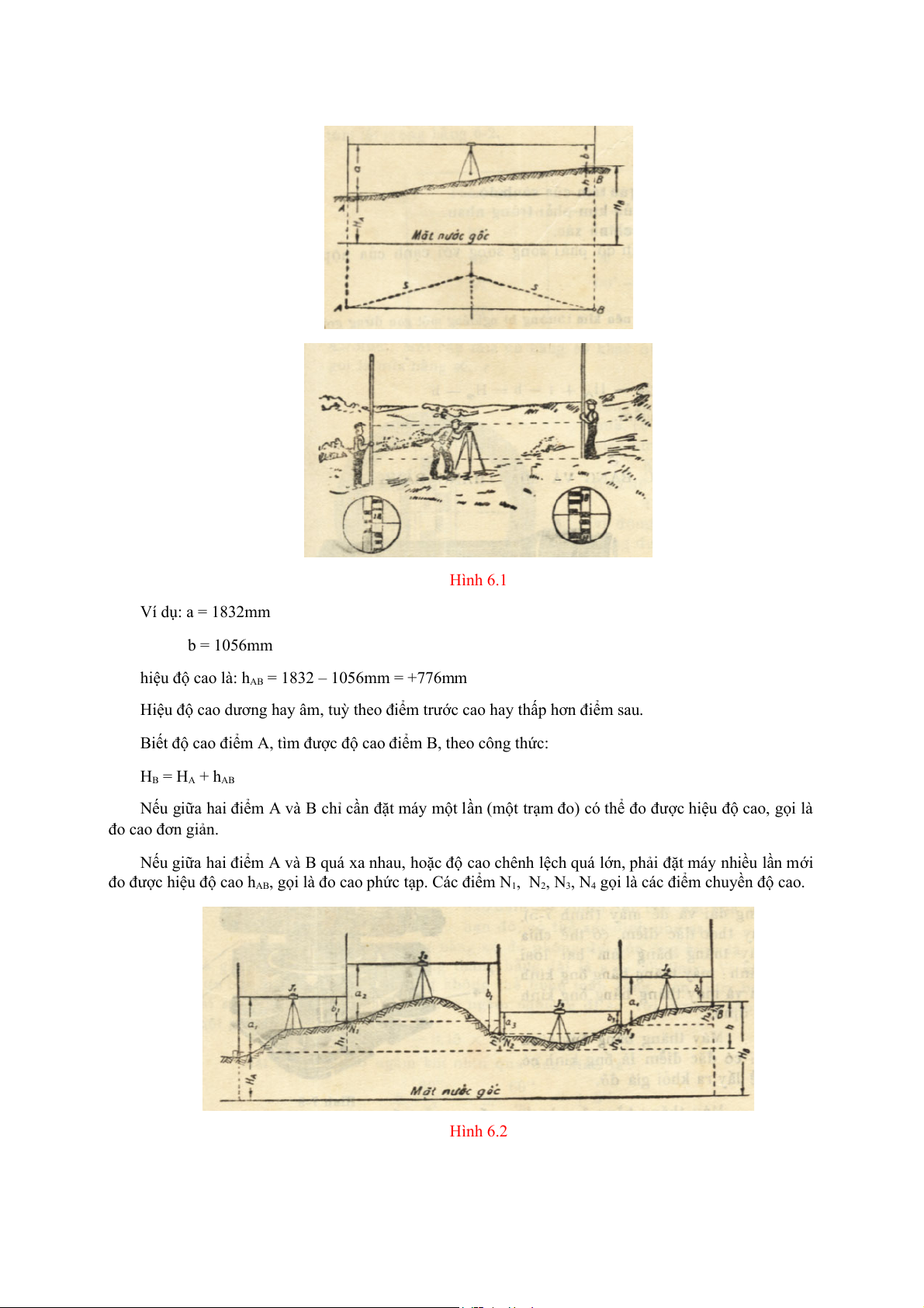 cao giữa hai điểm A và B là: hAB = a – b Hình 6.1 Ví dụ: a = 1832mm b = 1056mm