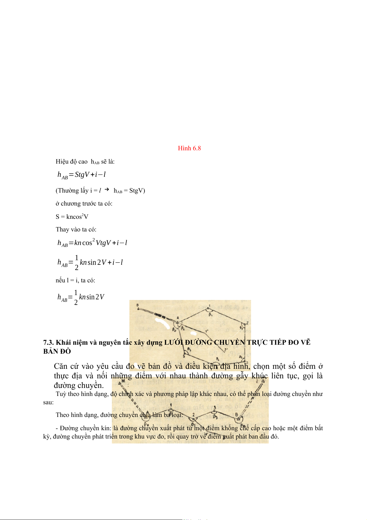 ứng với trục ngắm điểm M, S là khoảng cách nằm ngang từ A đến B Hình 6.8 Hiệu độ cao hAB sẽ là: h