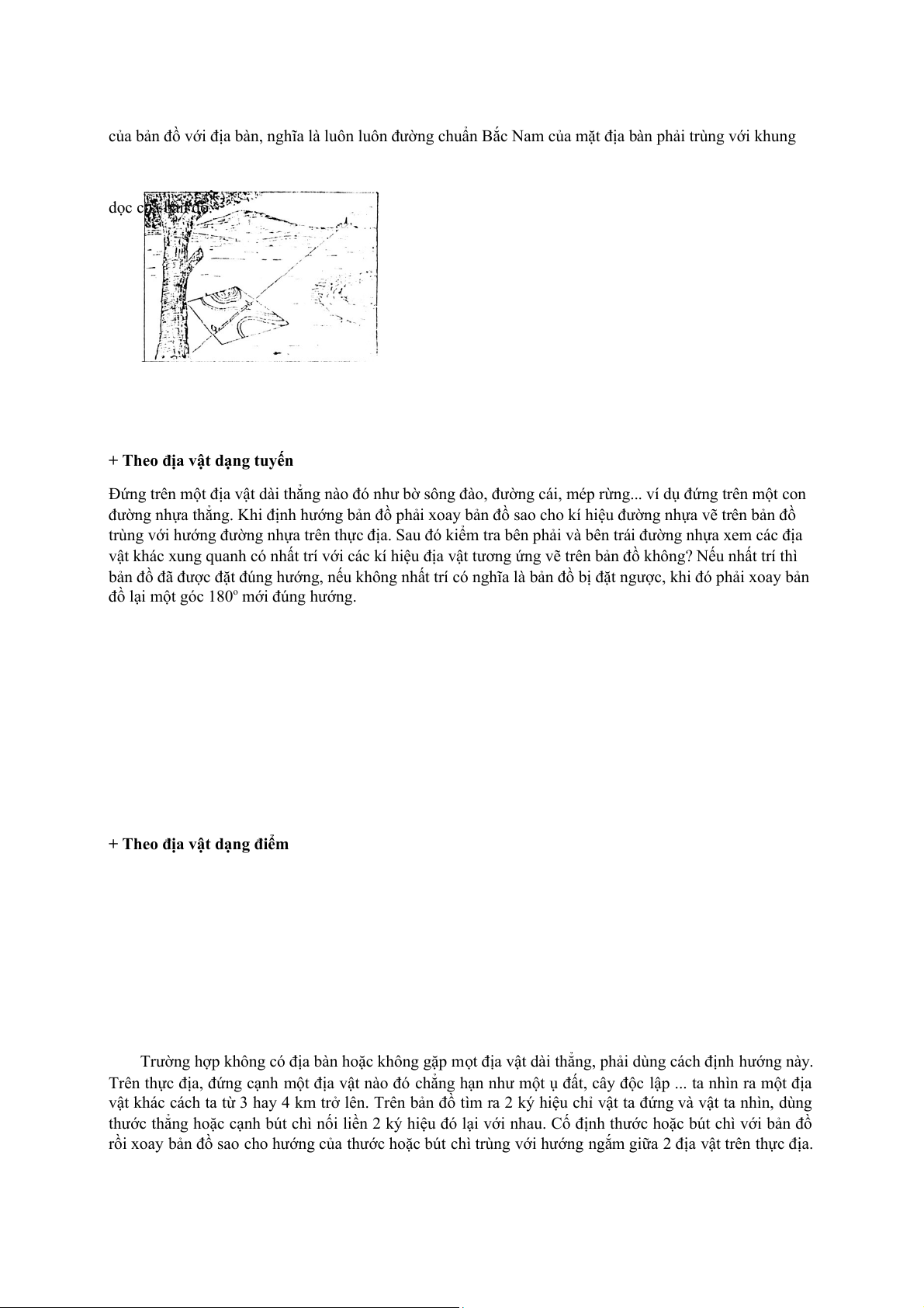 Trường hợp không có địa bàn hoặc không gặp mọt địa vật dài thẳng, phải dùng cách định hướng này.