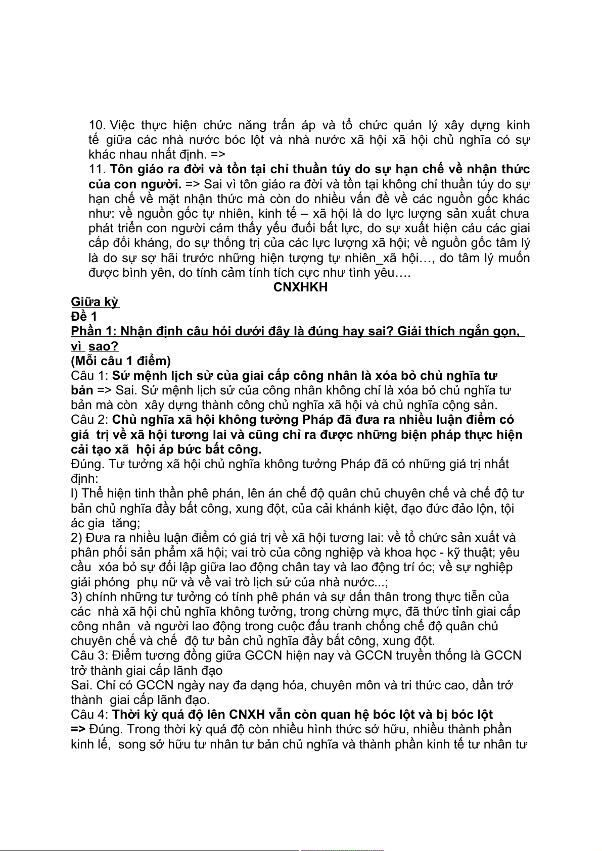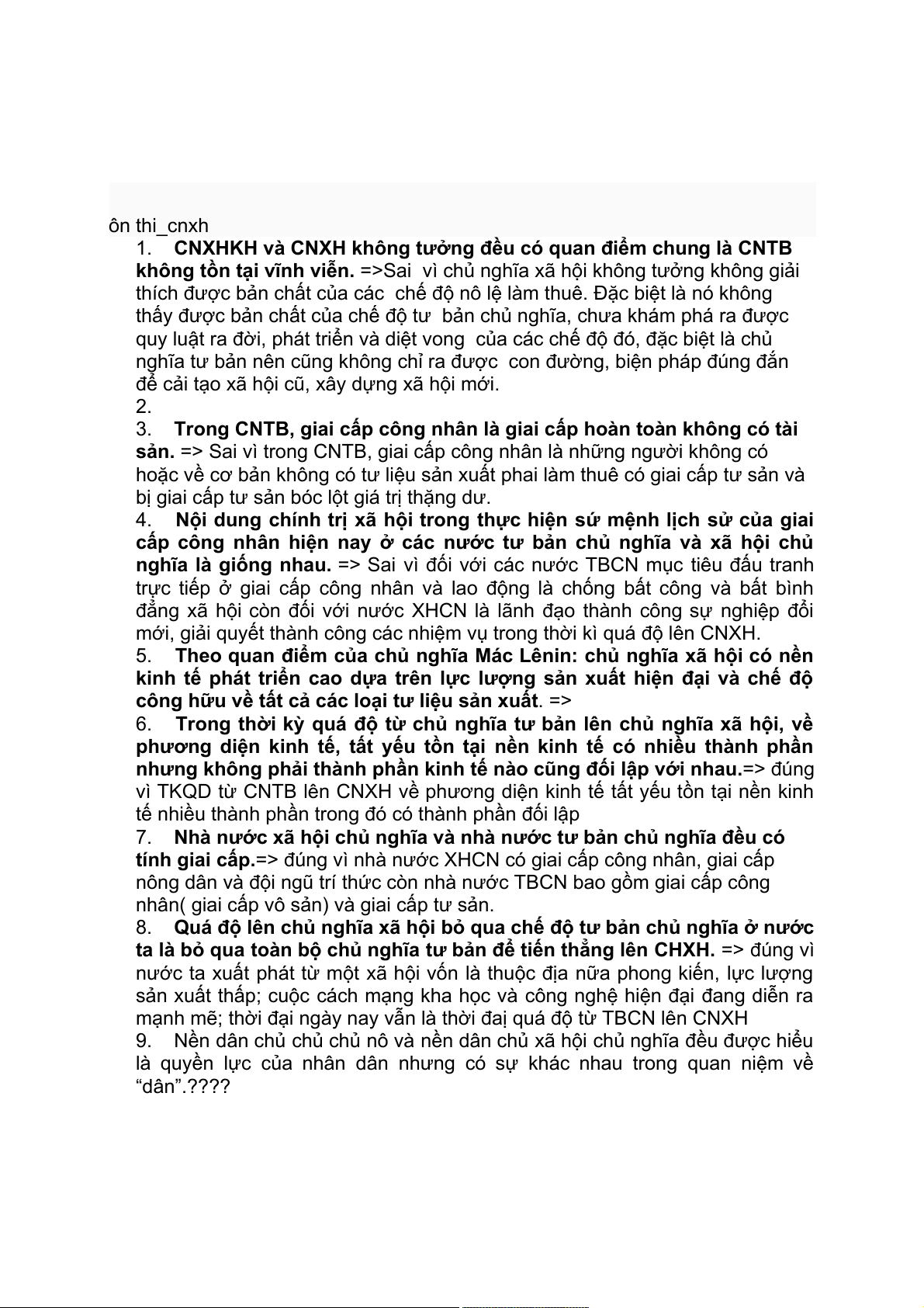1. CNXHKH và CNXH không tưởng đều có quan điểm chung là CNTB