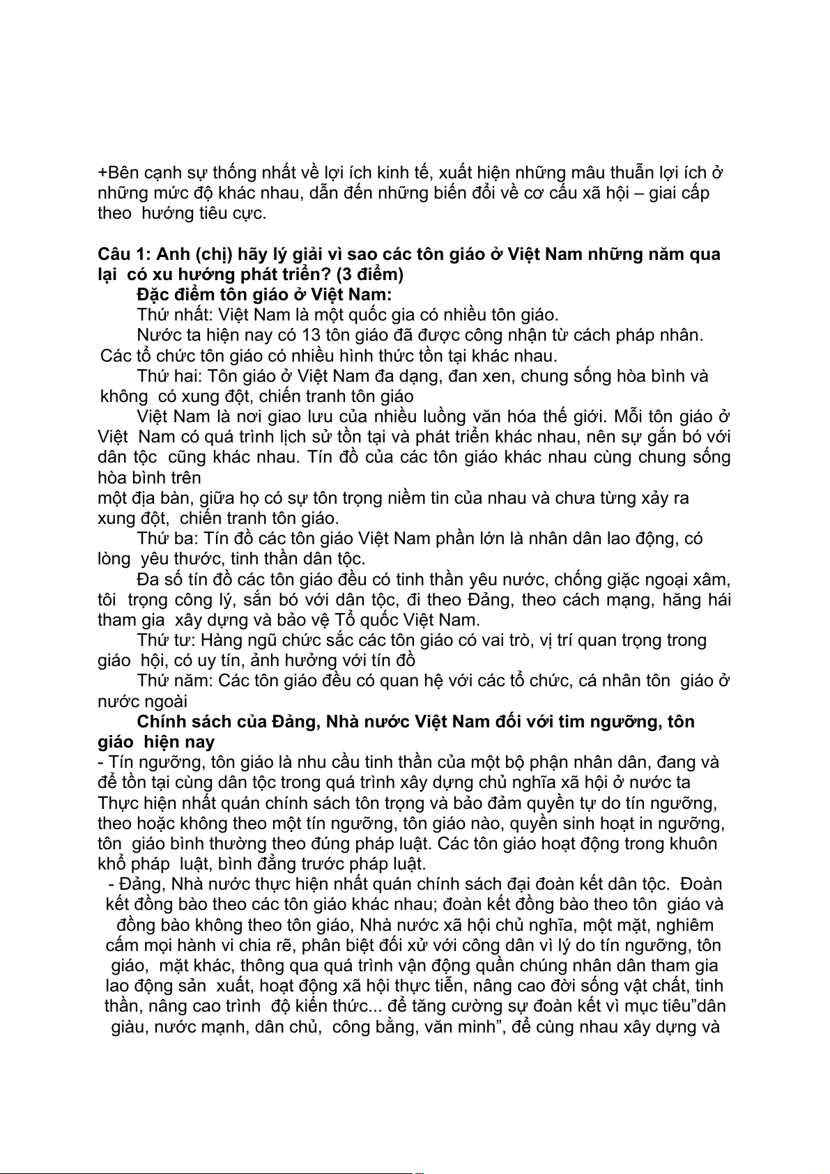 Câu 1: Anh (chị) hãy lý giải vì sao các tôn giáo ở Việt Nam những năm qua