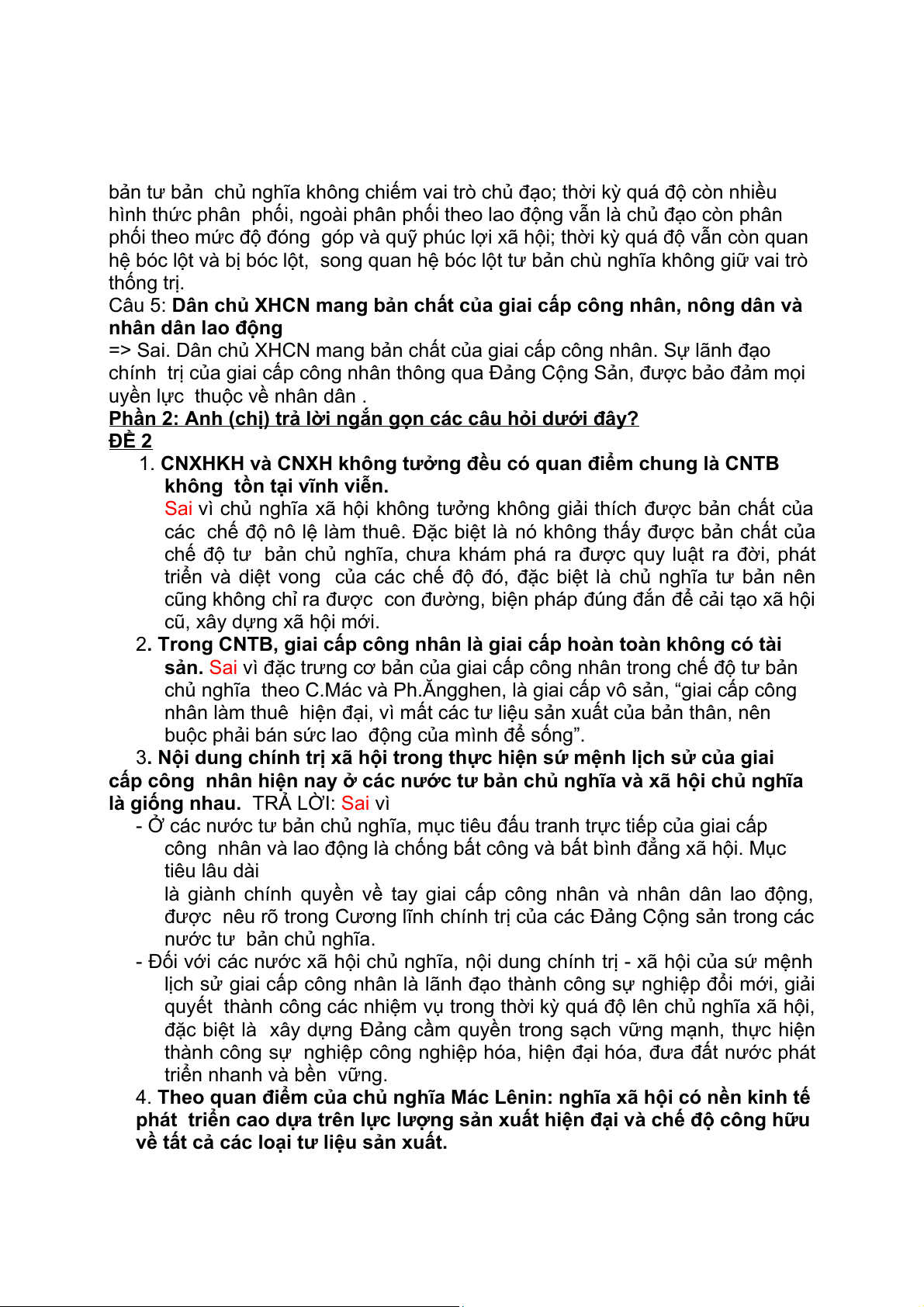 Câu 5: Dân chủ XHCN mang bản chất của giai cấp công nhân, nông dân và nhân dân lao động