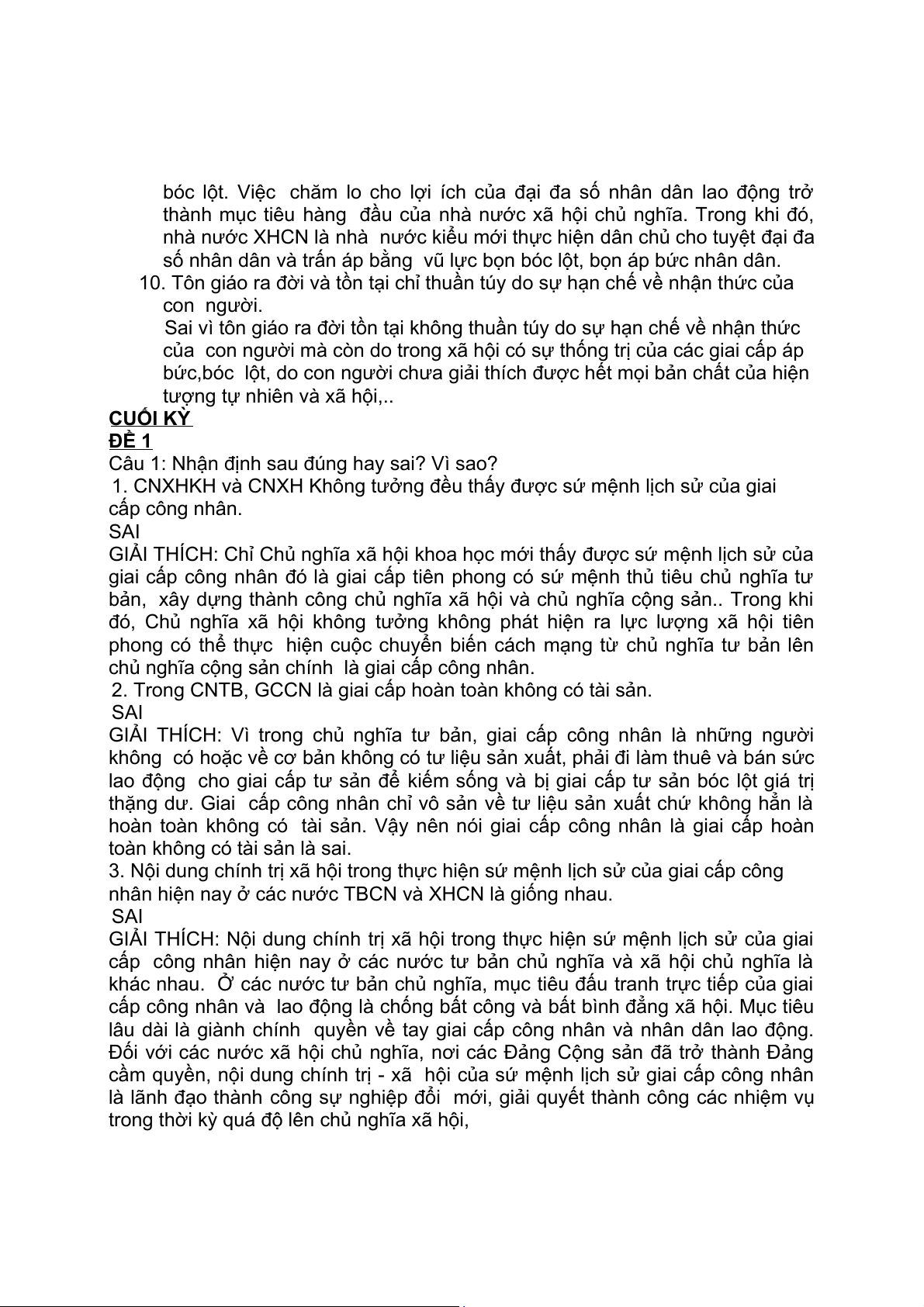 Câu 1: Sứ mệnh lịch sử của giai cấp công nhân là xóa bỏ chủ nghĩa tư