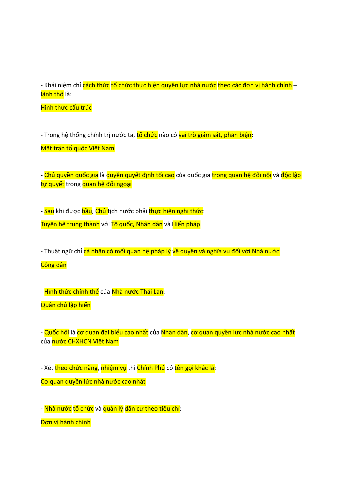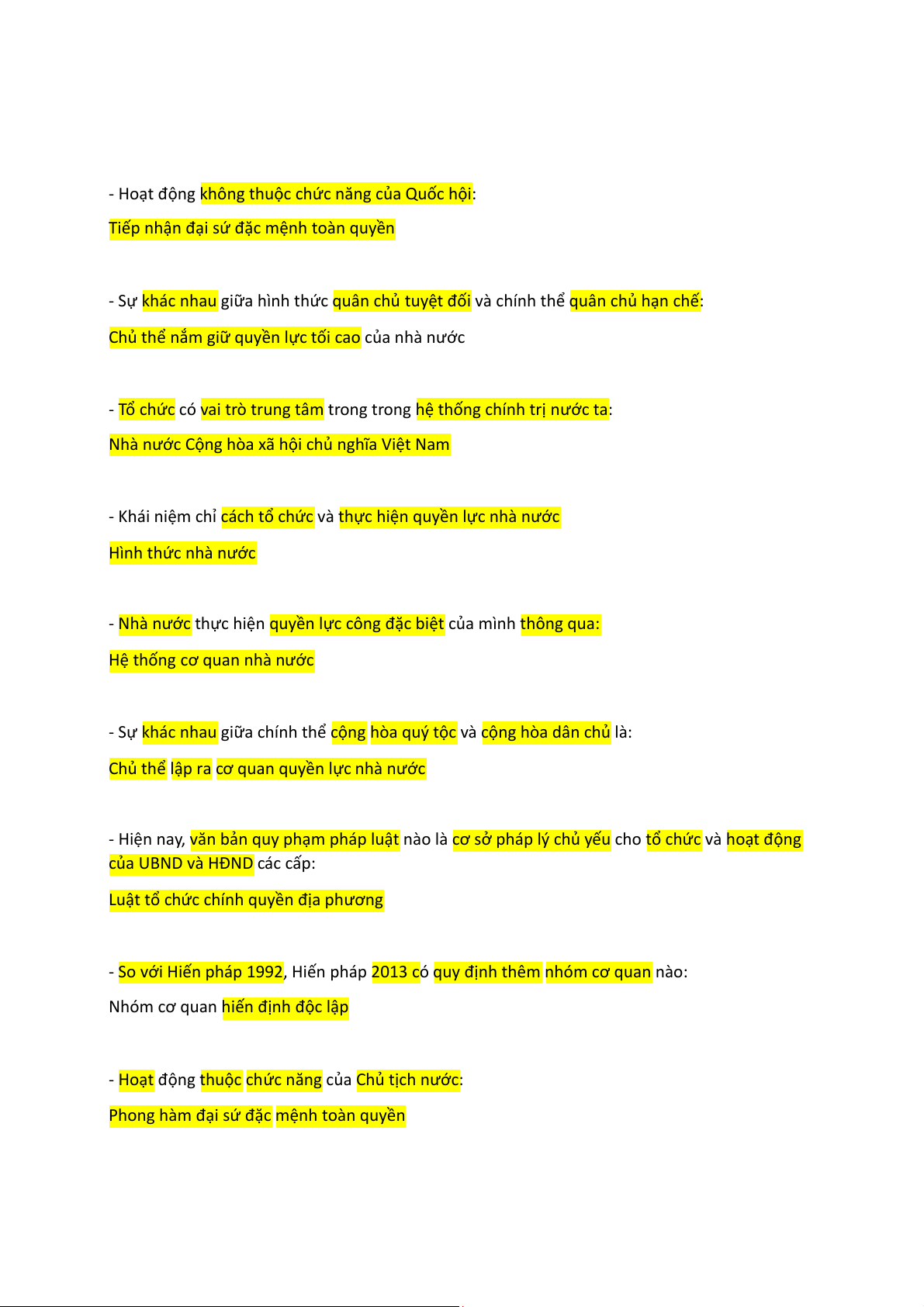 - Hình thức Nhà nước được cấu tạo bởi hình thức chính thể, hình thức cấu trúc và c ế độ chính h trị - Điểm a