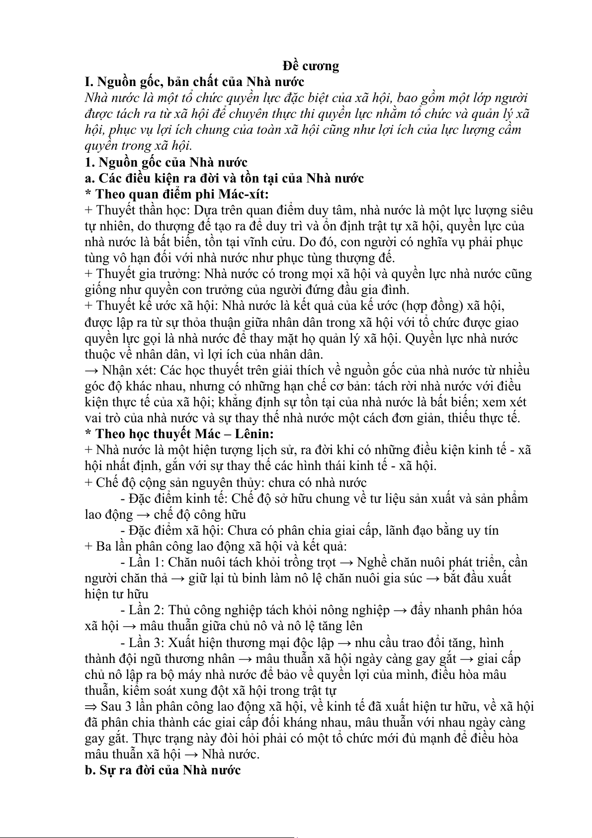 I. Nguồn gốc, bản chất của Nhà nước