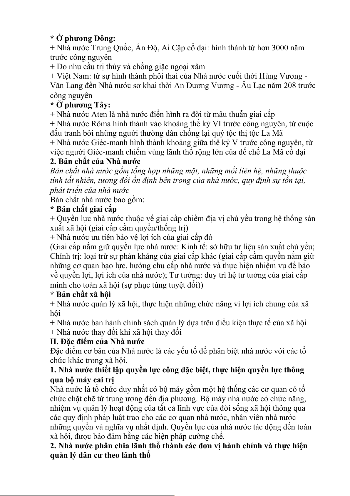 II. Đặc điểm của Nhà nước