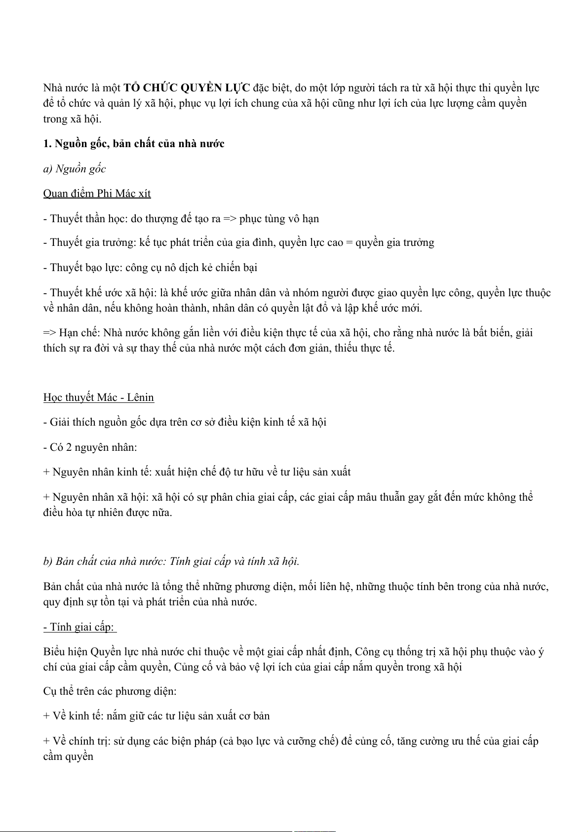 1. Nguồn gốc, bản chất của nhà nước a) Nguồn gốc Quan điểm Phi Mác xít