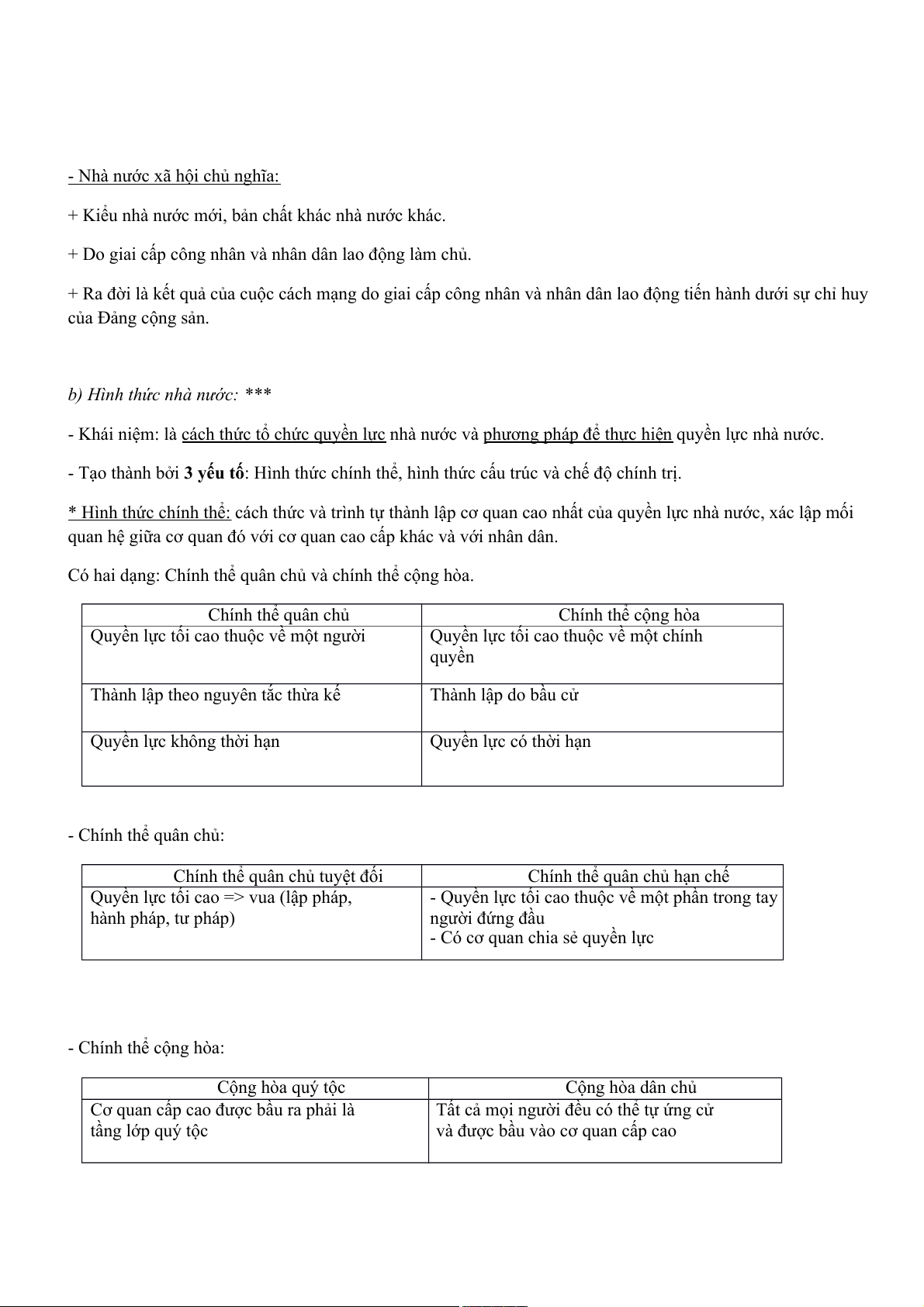 * Hình thức chính thể: cách thức và trình tự thành lập cơ quan cao nhất của quyền lực nhà nước, xác lập mối