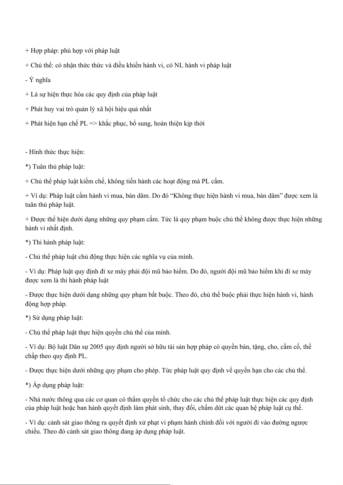 + Phát hiện hạn chế PL => khắc phục, bổ sung, hoàn thiện kịp thời - Hình thức thực hiện: *) Tuân thủ pháp luật: