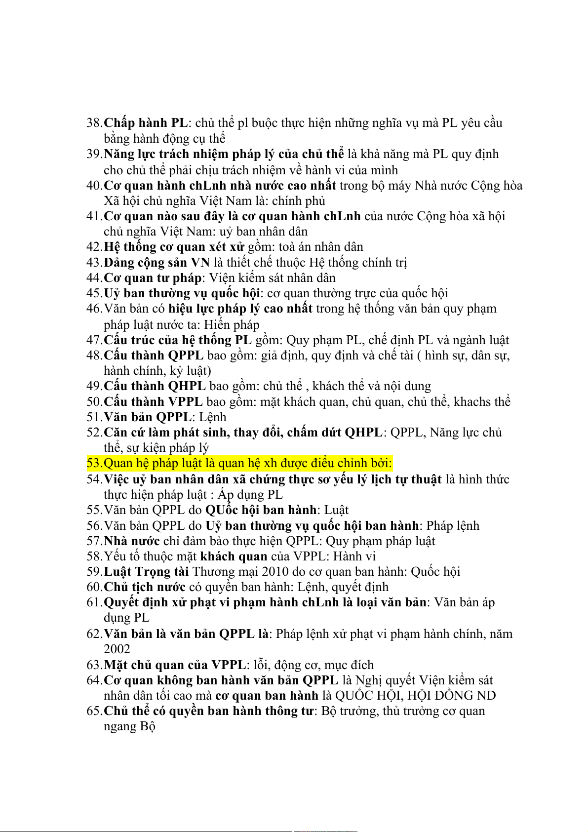 38.Chấp hành PL: chủ thể pl buộc thực hiện những nghĩa vụ mà PL yêu cầu