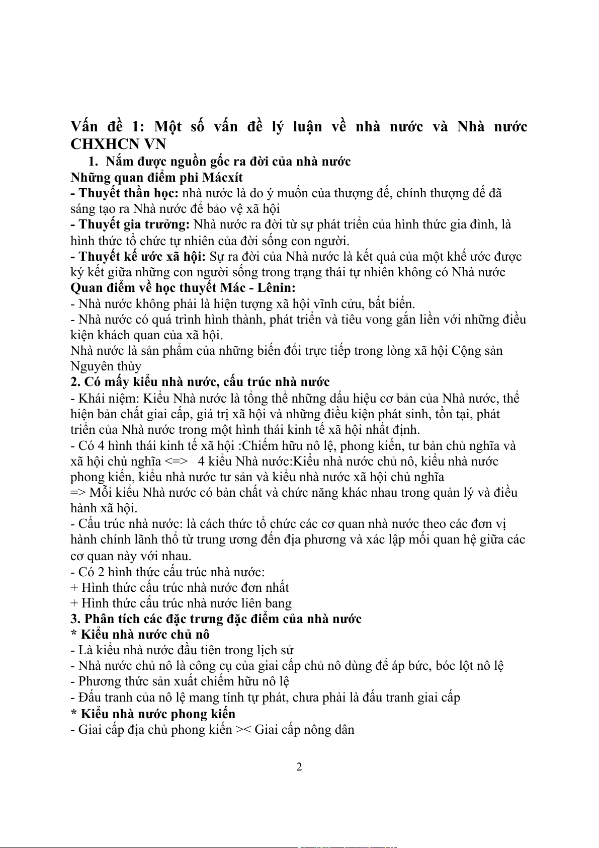 Vấn đề 1: Một số vấn đề lý luận về nhà nước và Nhà nước CHXHCN VN