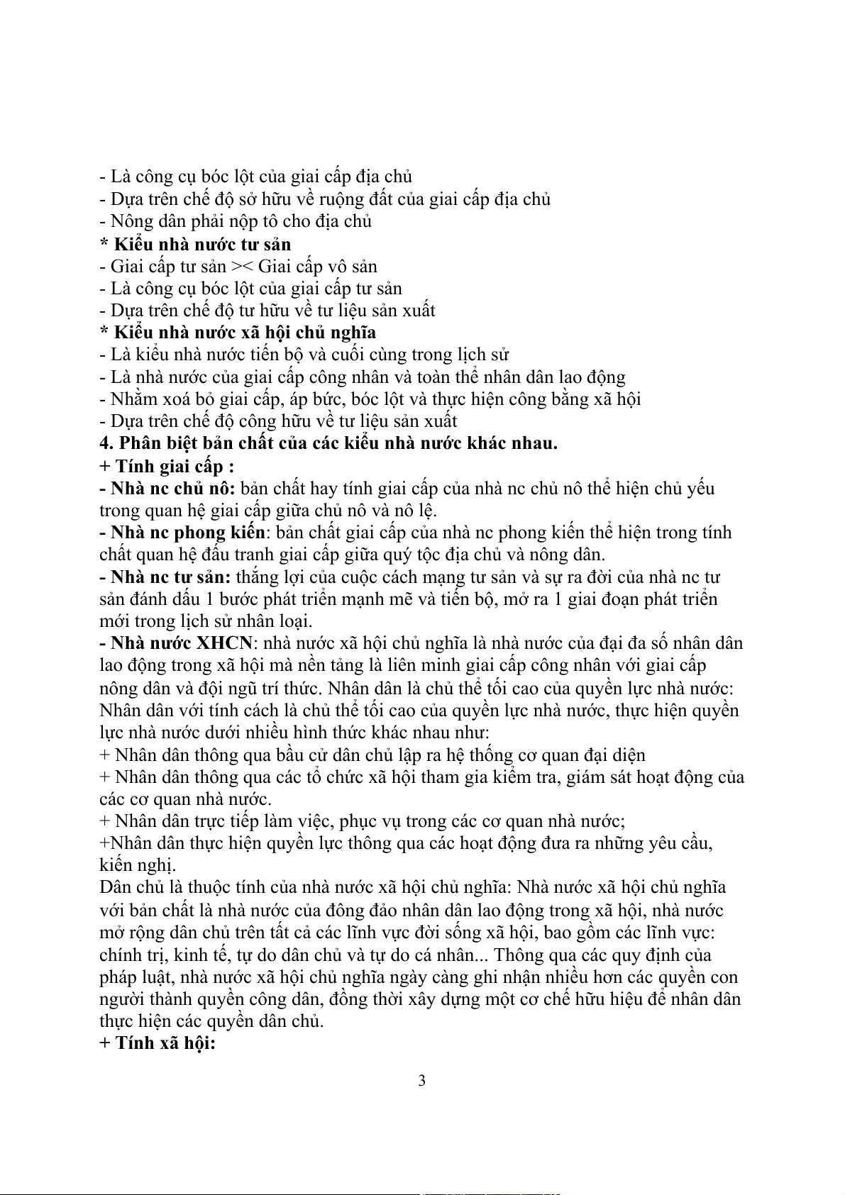 4. Phân biệt bản chất của các kiểu nhà nước khác nhau. + Tính giai cấp :