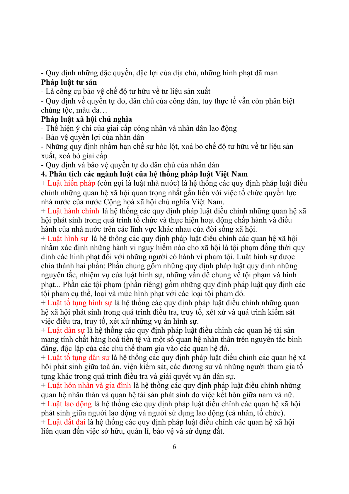 4. Phân tích các ngành luật của hệ thống pháp luật Việt Nam..............................................5
