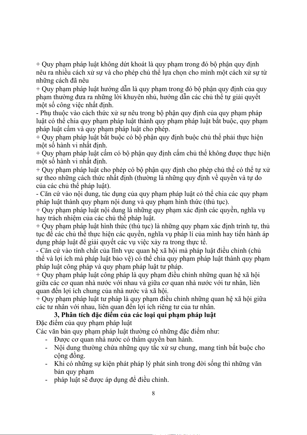 3, Phân tích đặc điểm của các loại qui phạm pháp luật.........................................................7
