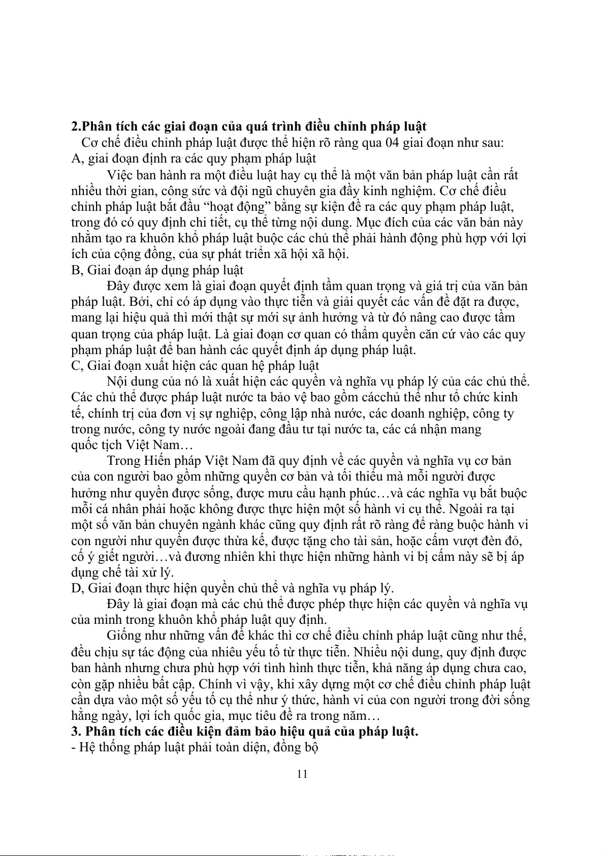 2.Phân tích các giai đoạn của quá trình điều chỉnh pháp luật............................................10