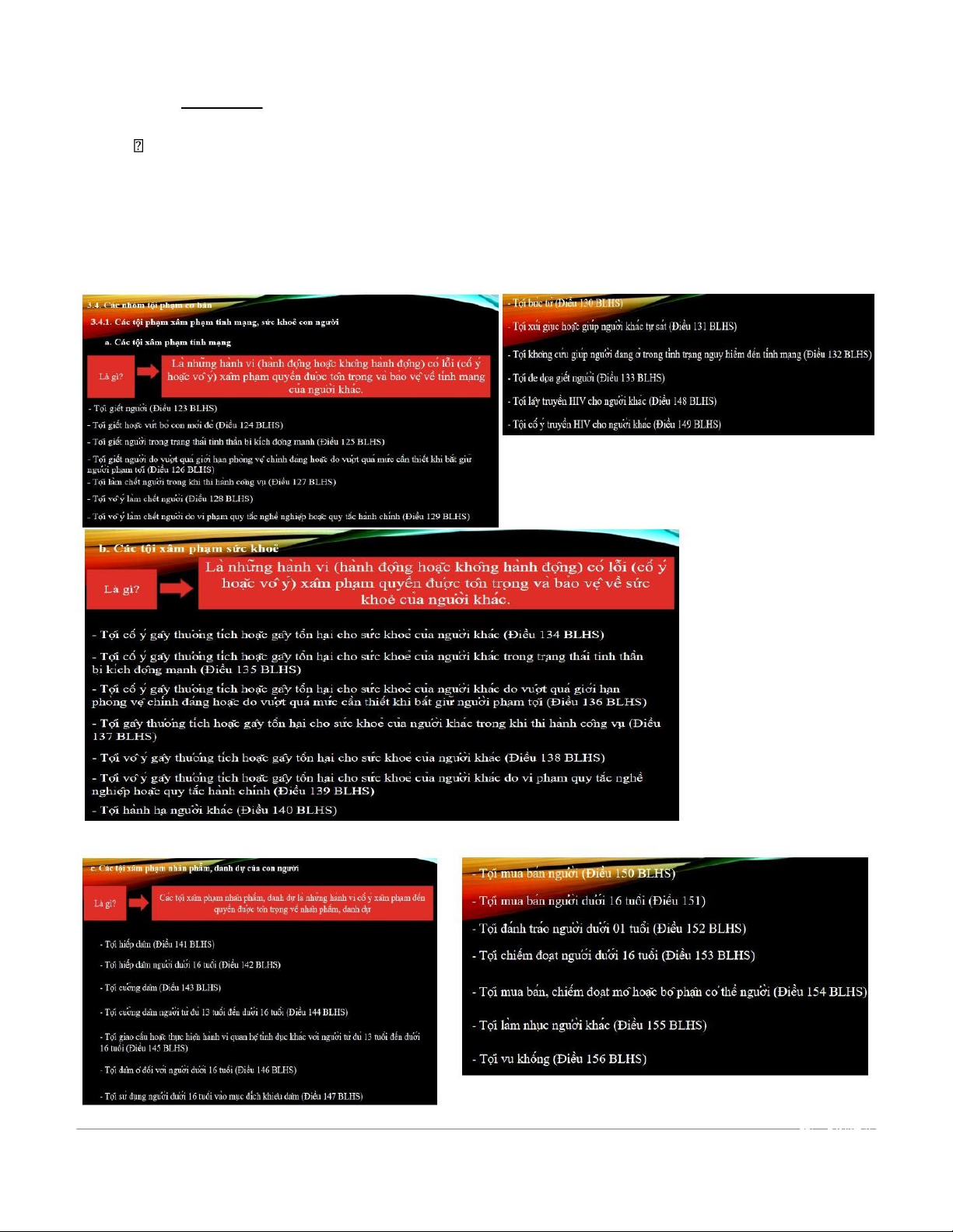 Câu 11: Trình bày các tội phạm xâm phạm tính mạng, sức khỏe con người.