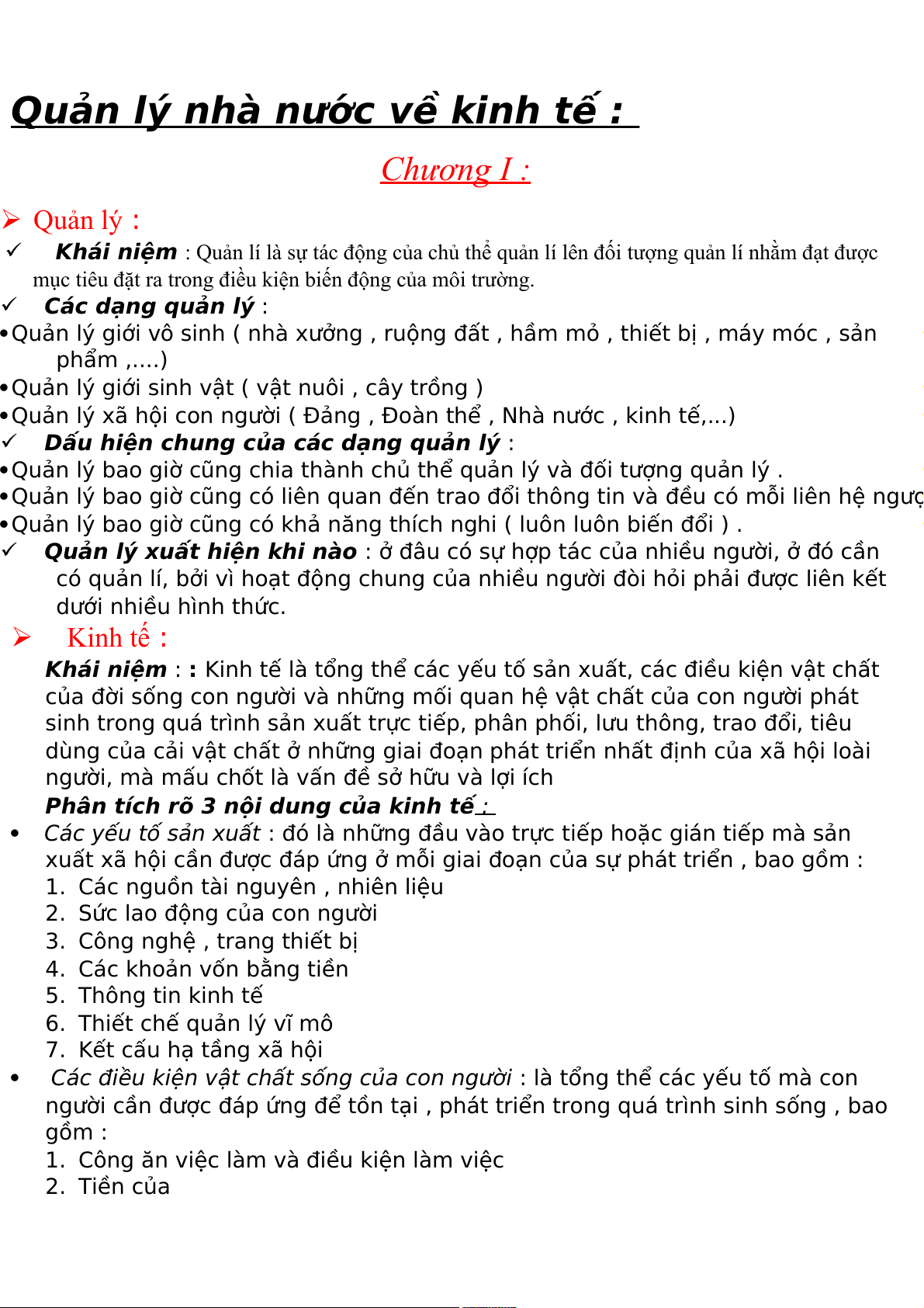 Quản lý nhà nước về kinh tế : Chương I : Quản lý :
