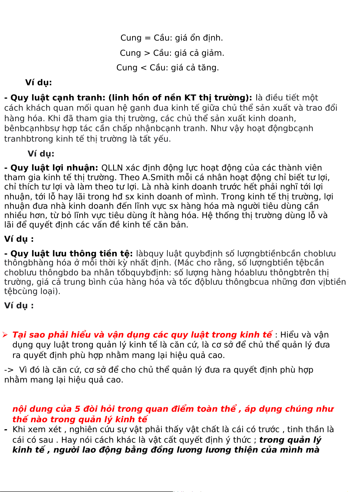 - Quy luật cung-cầu: Sự vận động của quy luật cung-cầu thể hiện mối quan hệ