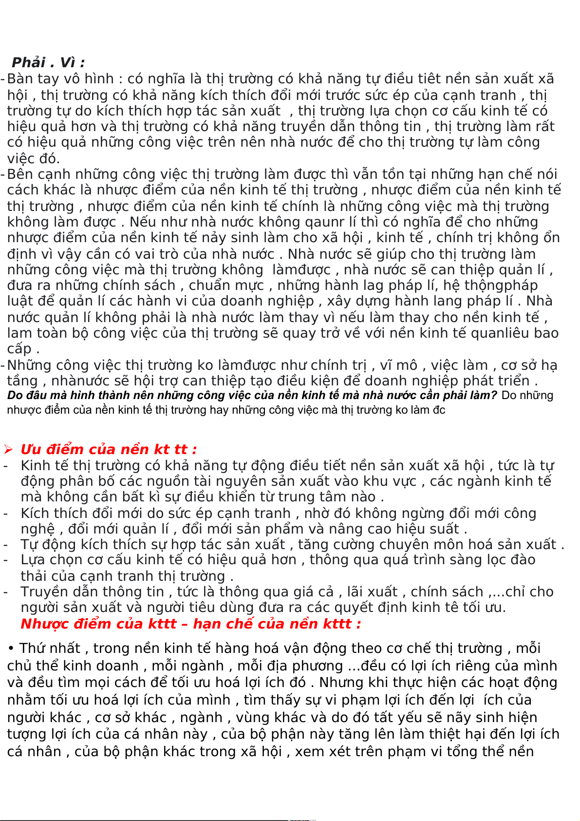 nhược điểm của nền kinh tế thị trường hay những công việc mà thị trường ko làm đc