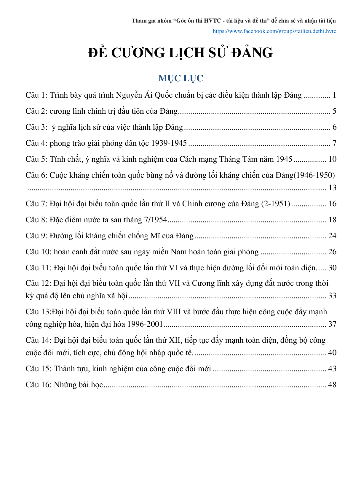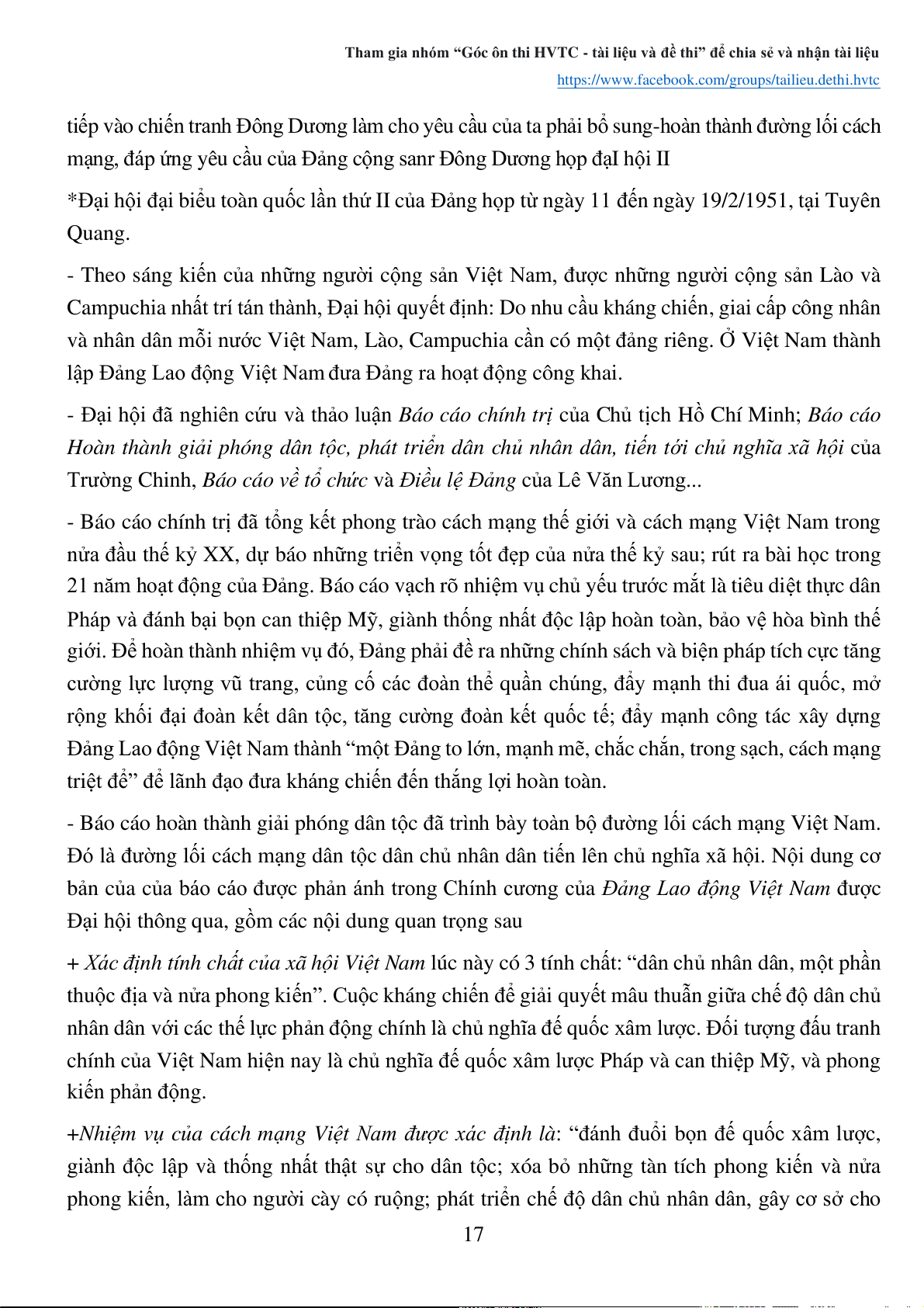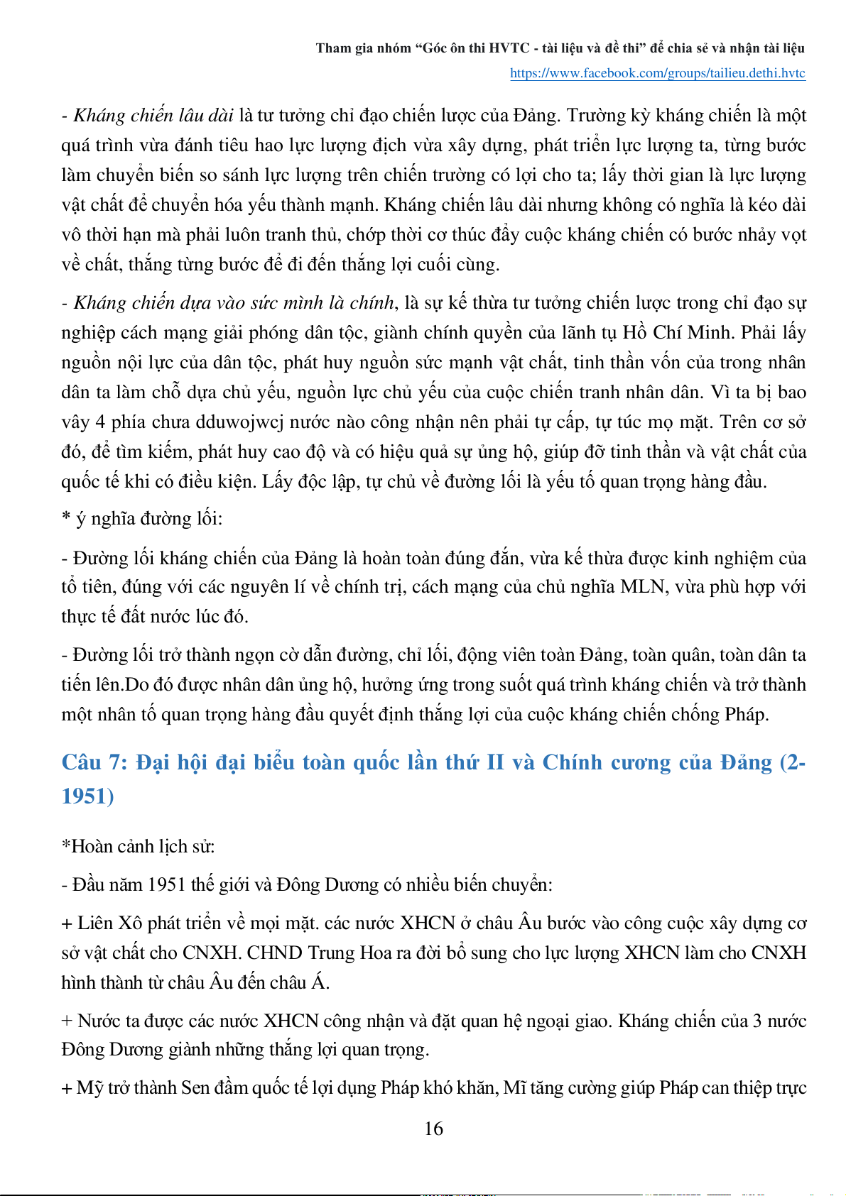 Câu 7: Đại hội đại biểu toàn quốc lần thứ II và Chính cương của Đảng (2-1951) . . . . . . . . . 16
