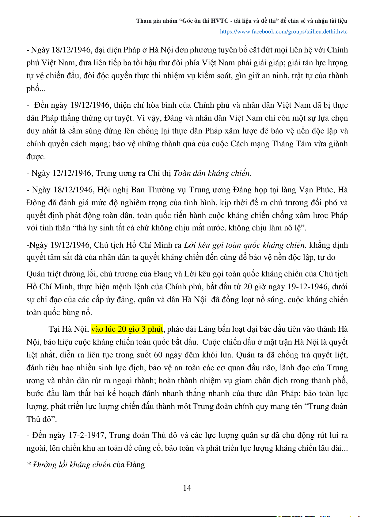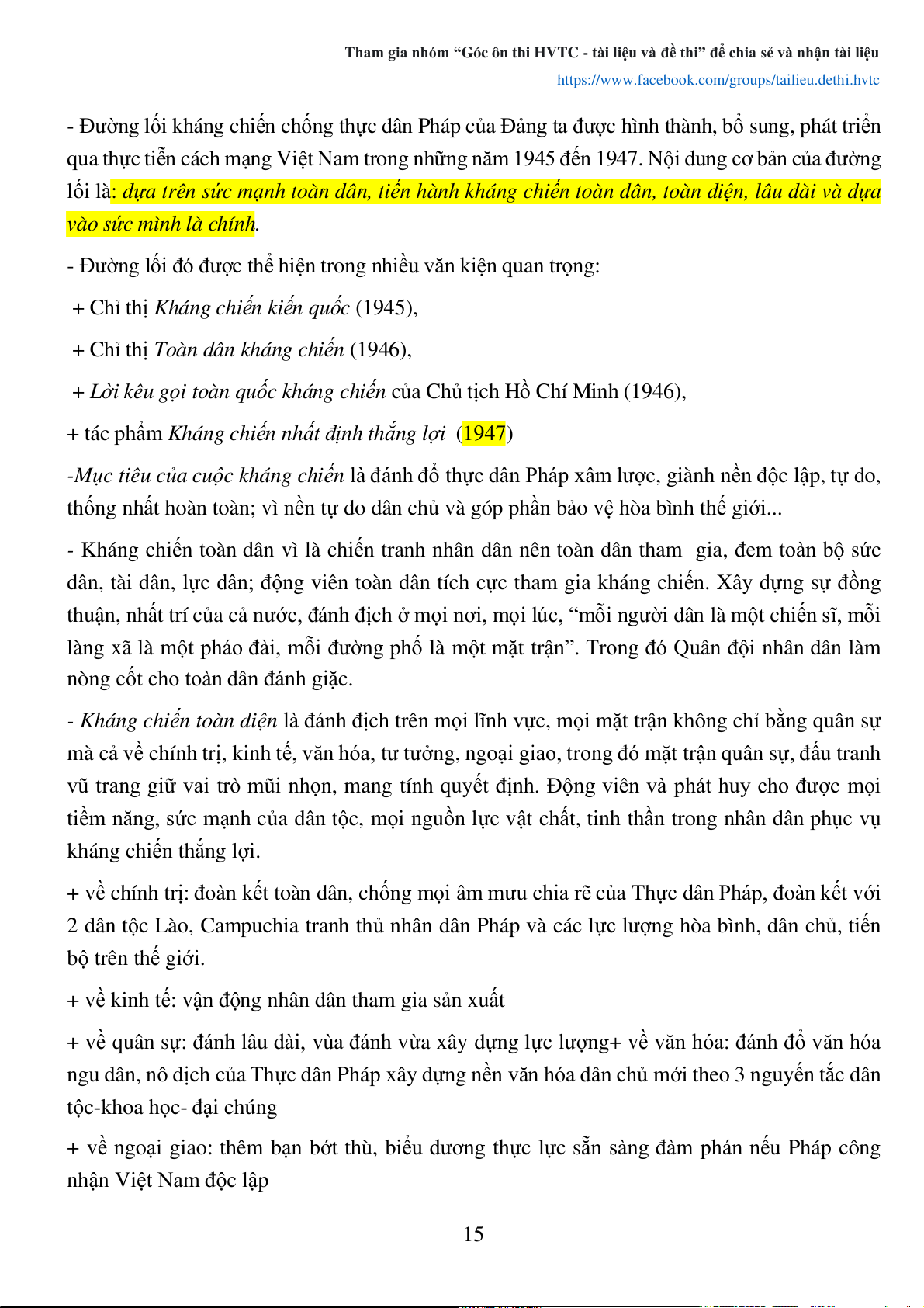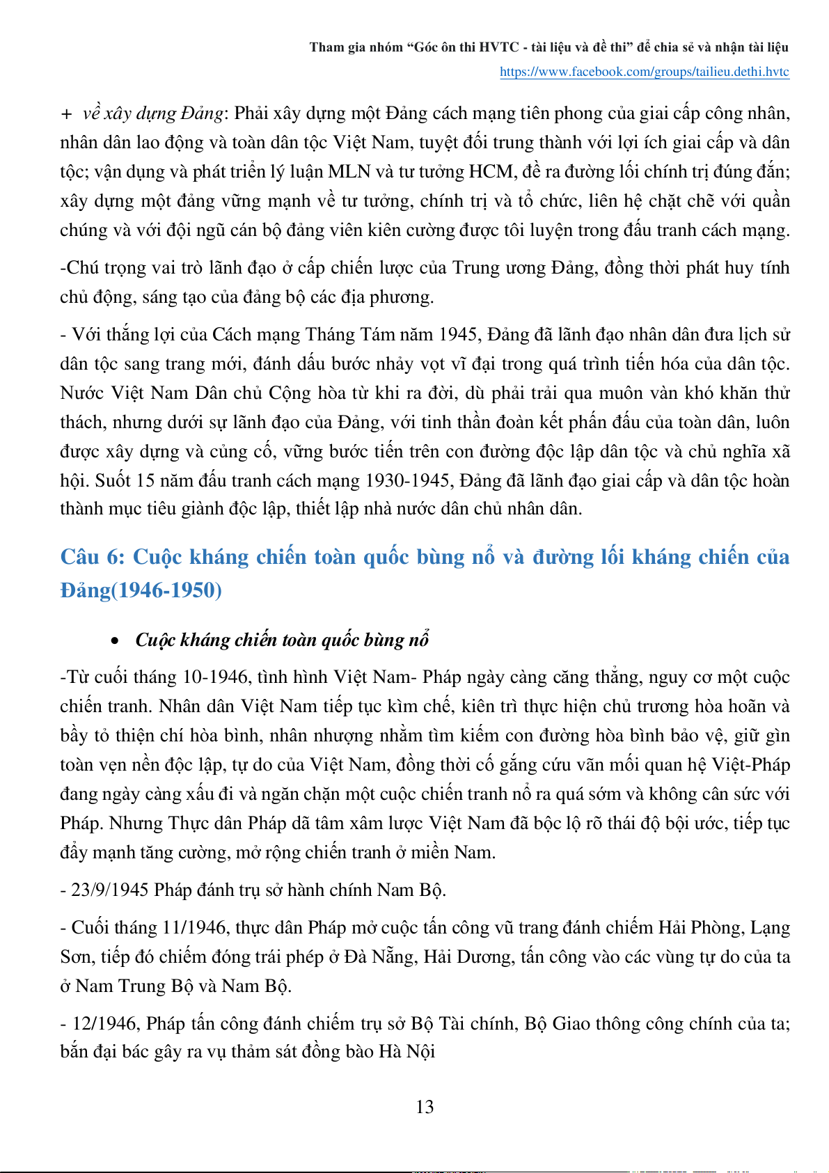 Câu 6: Cuộc kháng chiến toàn quốc bùng nổ và đường lối kháng chiến của Đảng(1946-1950)