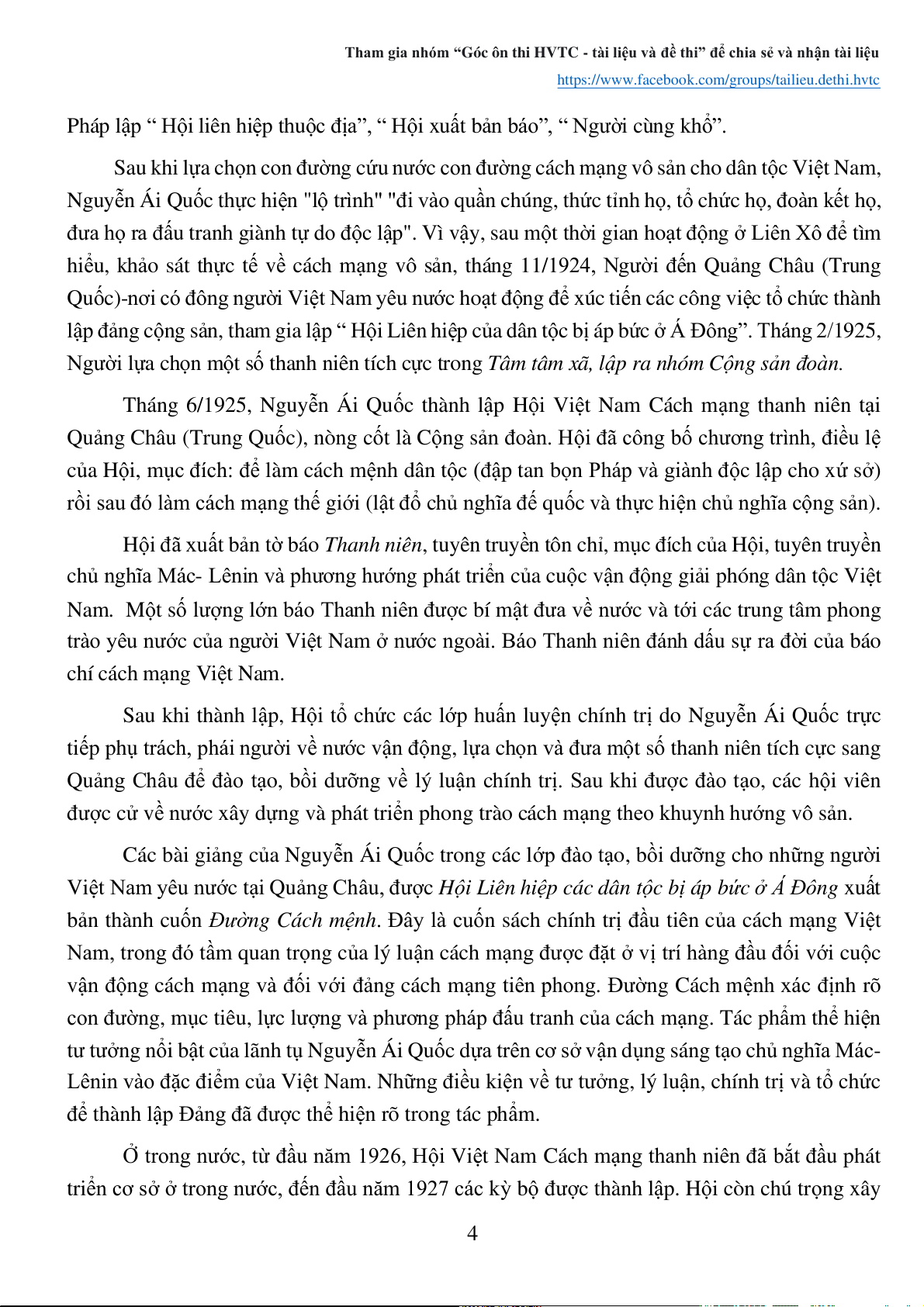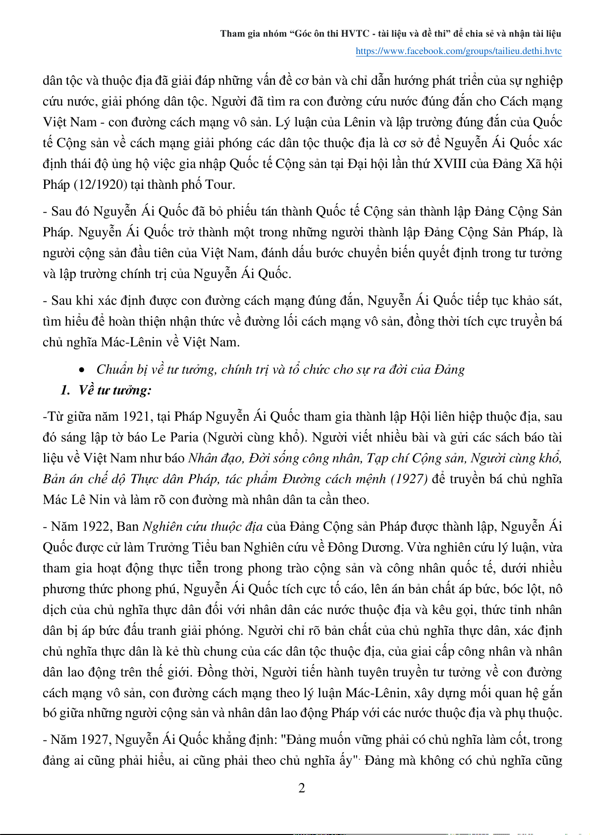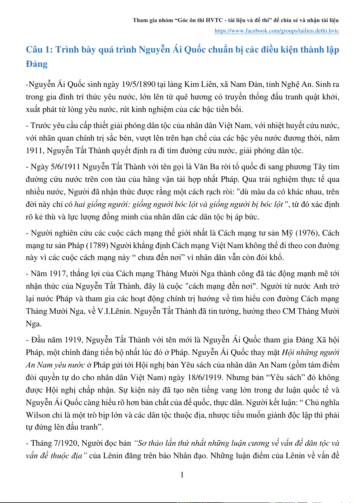 Câu 1: Trình bày quá trình Nguyễn Ái Quốc chuẩn bị các điều kiện thành lập Đảng . . . . . . . 1
