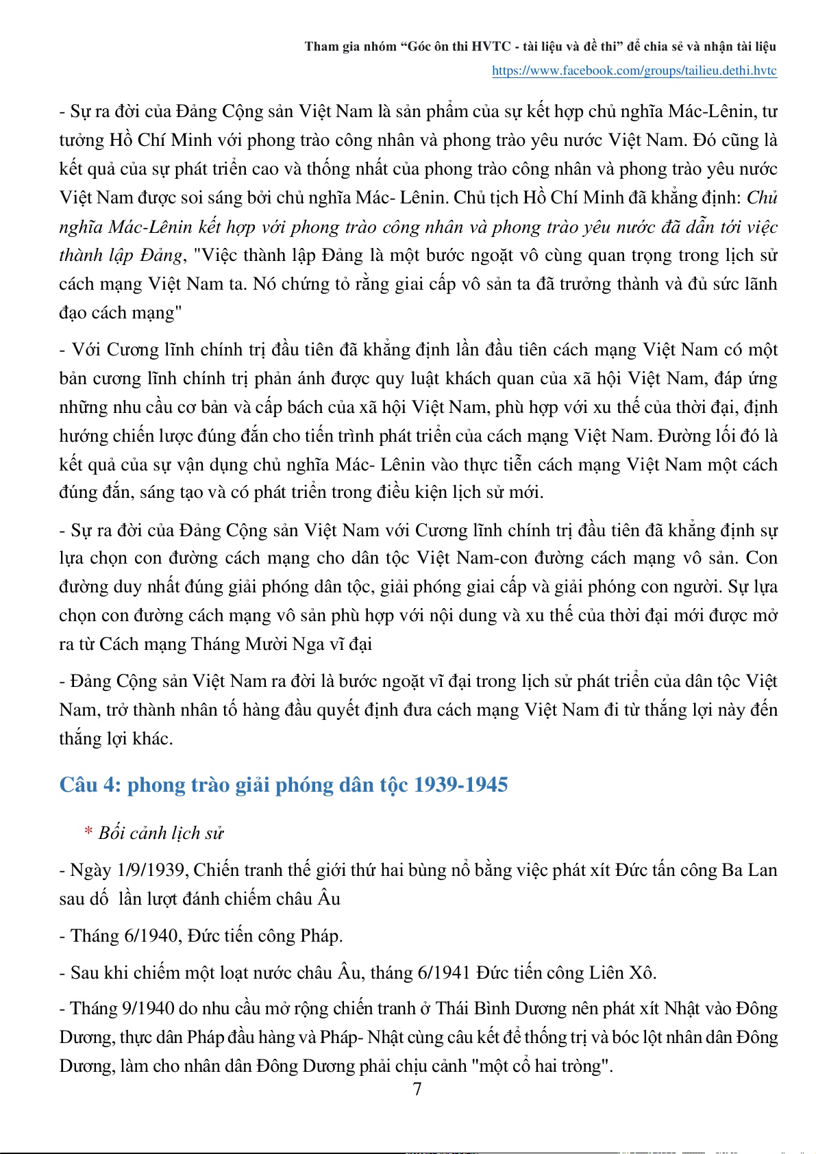 Câu 4: phong trào giải phóng dân tộc 1939-1945 . . . . . . . . . . . . . . . . . . . . . . . . . . . . . . . . . . . 7