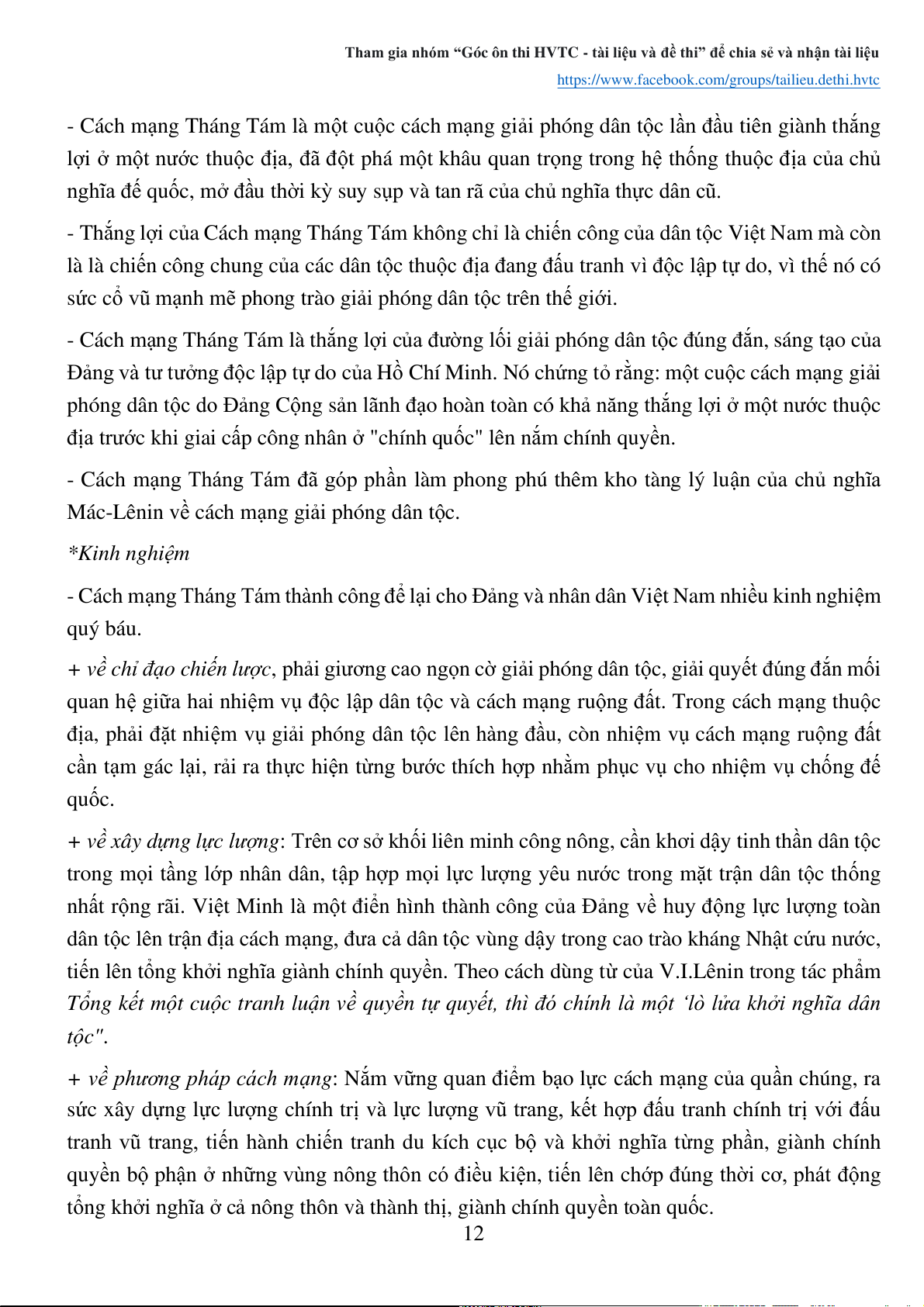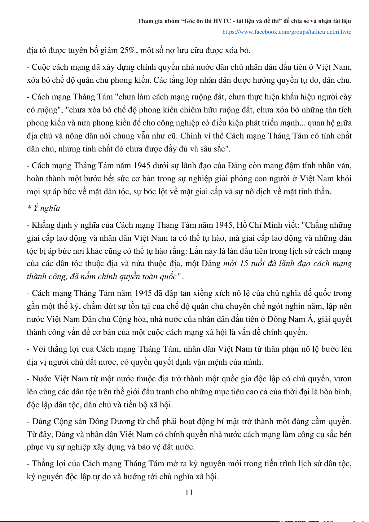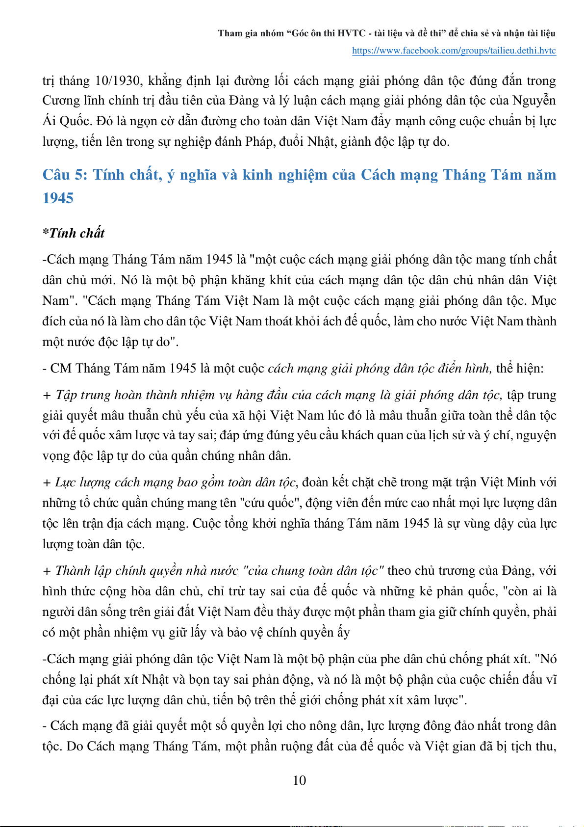 Câu 5: Tính chất, ý nghĩa và kinh nghiệm của Cách mạng Tháng Tám năm 1945 . . . . . . . . 10
