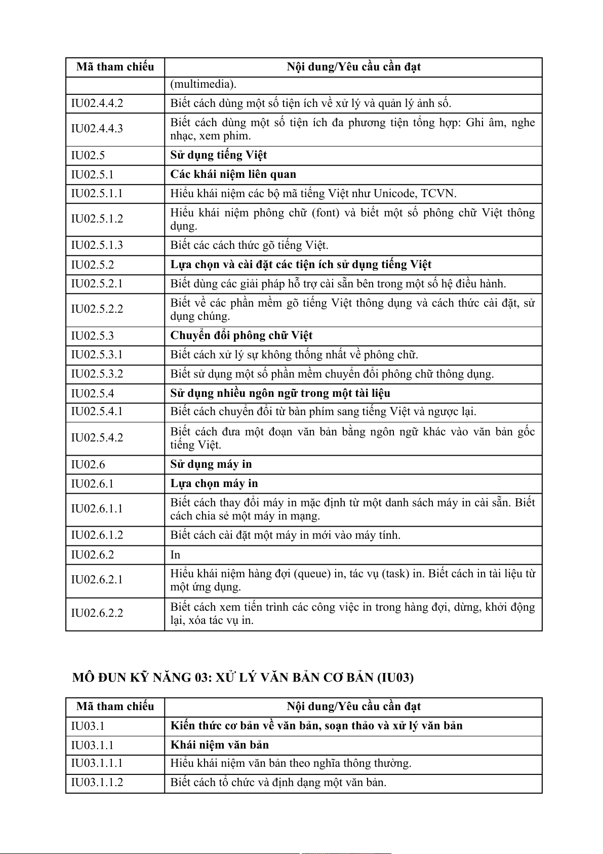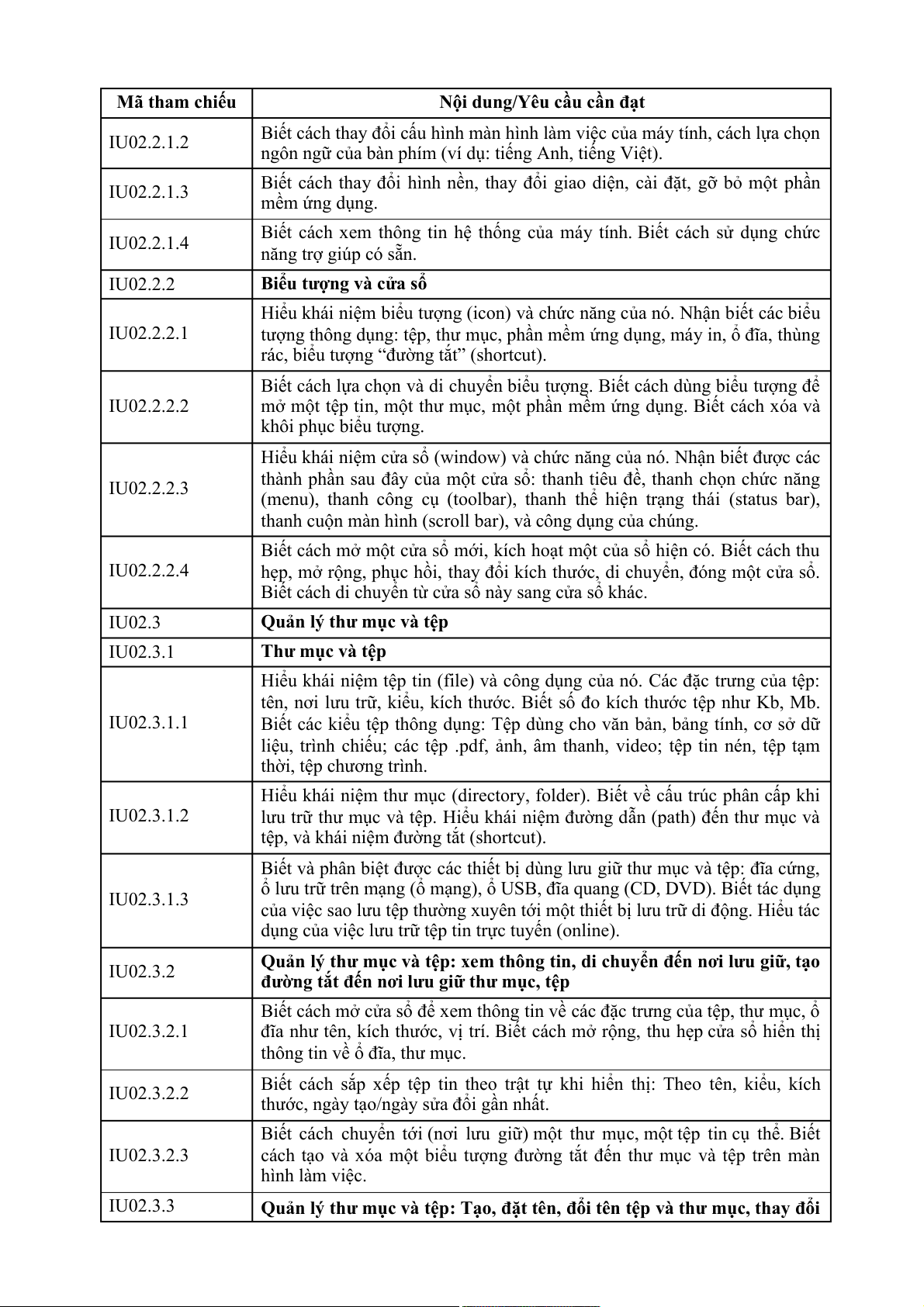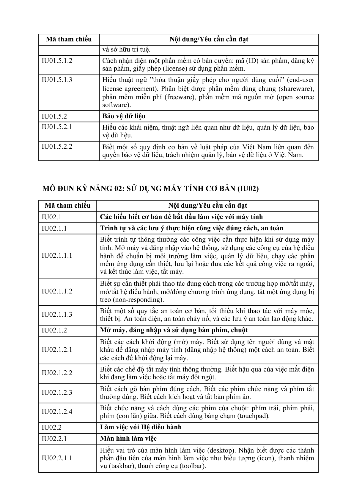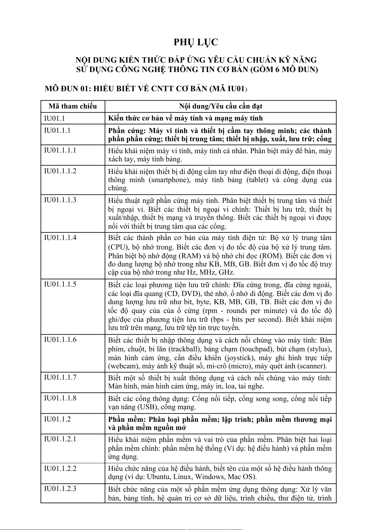 MÔ ĐUN 01: HIỂU BIẾT VỀ CNTT CƠ BẢN (MÃ IU01) Mã tham chiếu