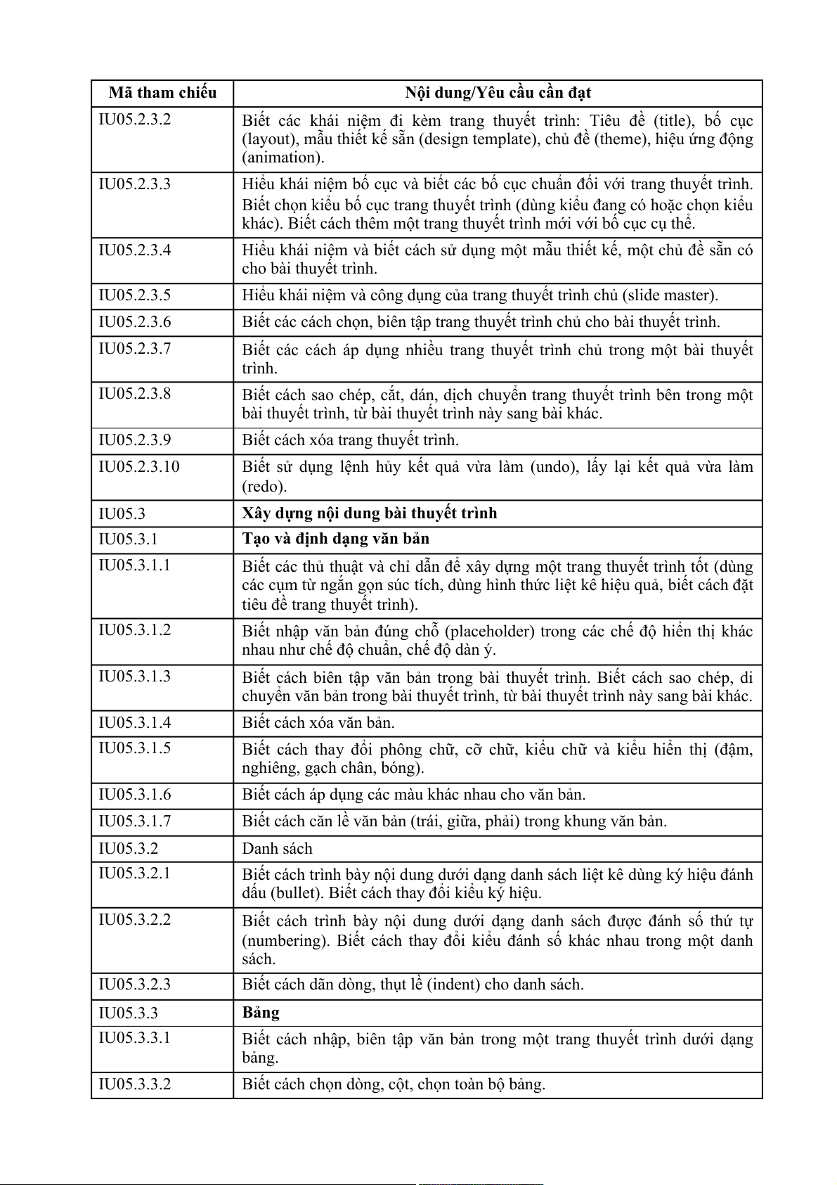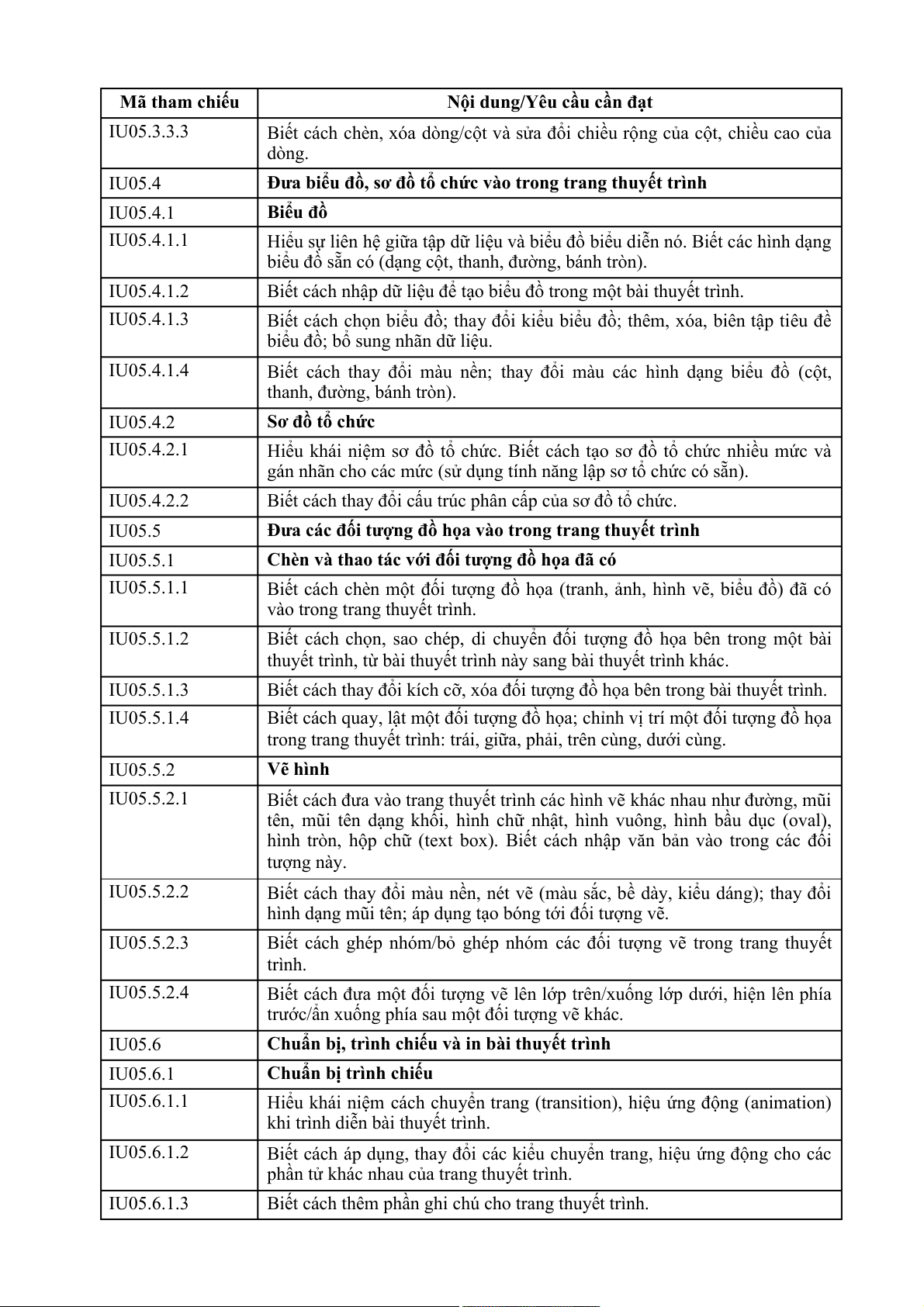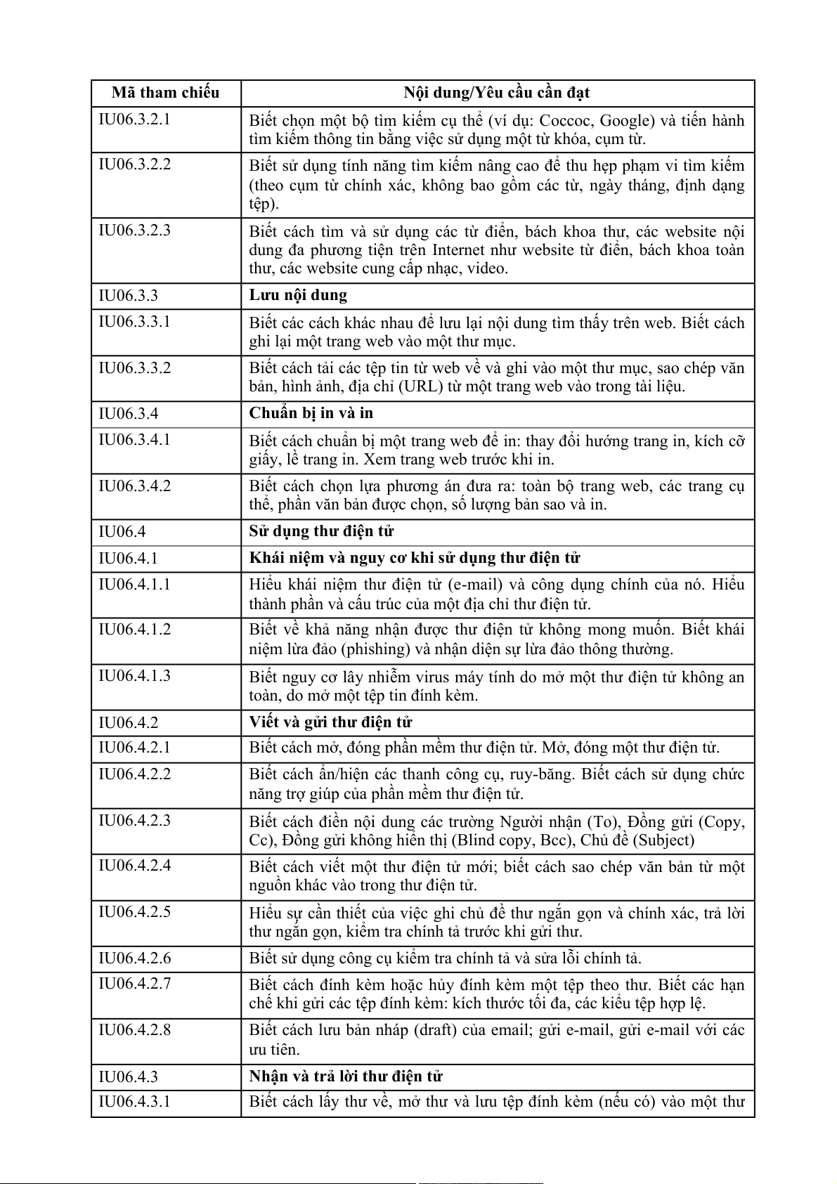 Nội dung/Yêu cầu cần đạt IU06.3.2.1