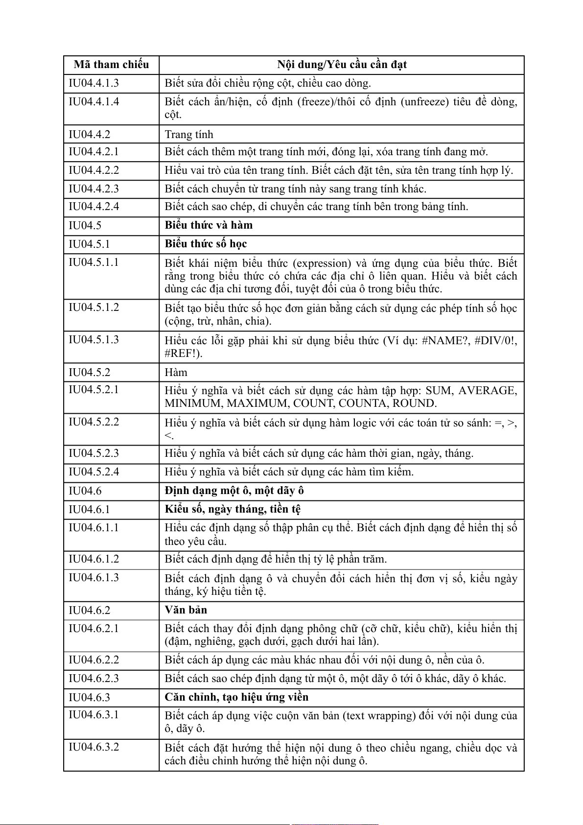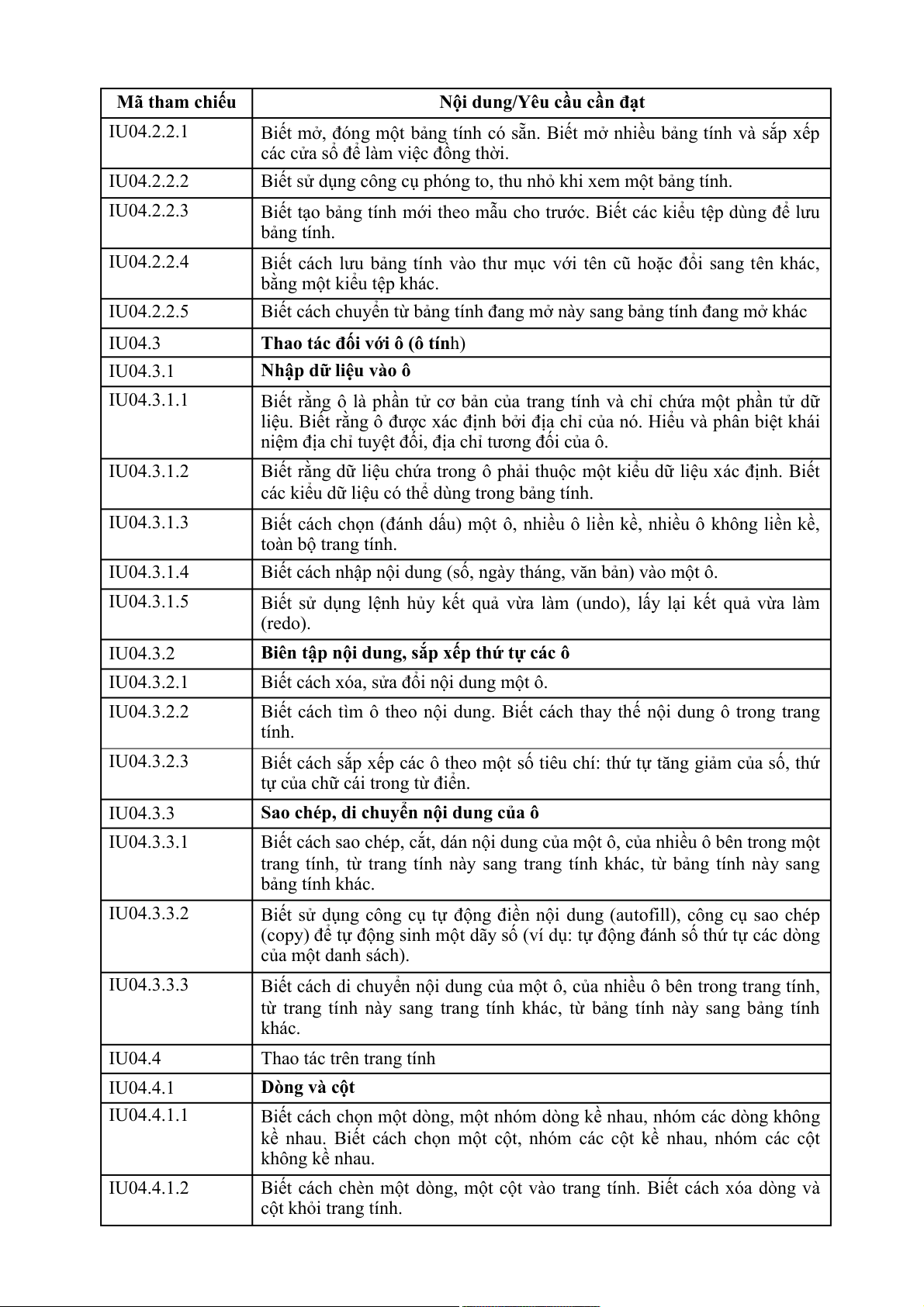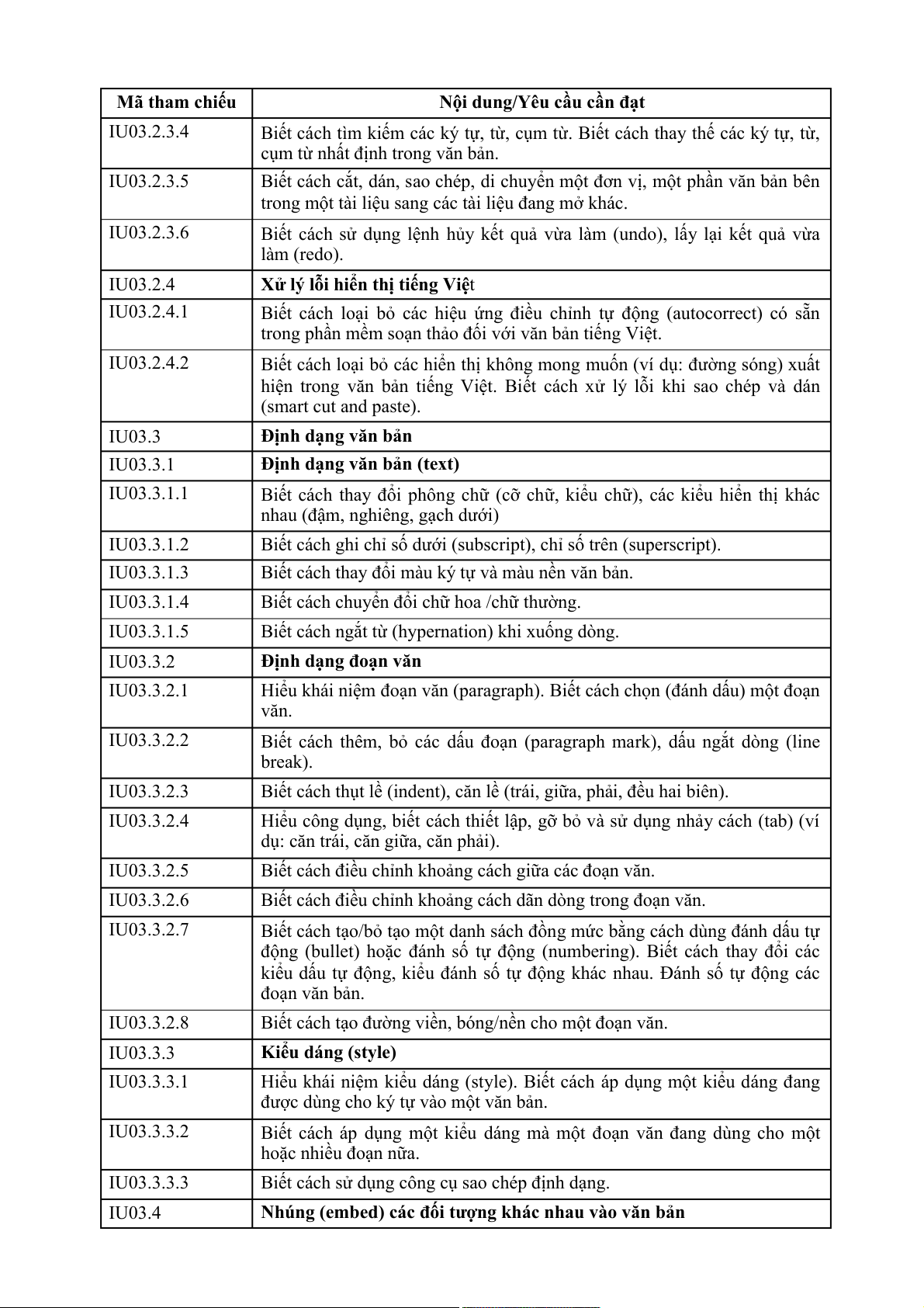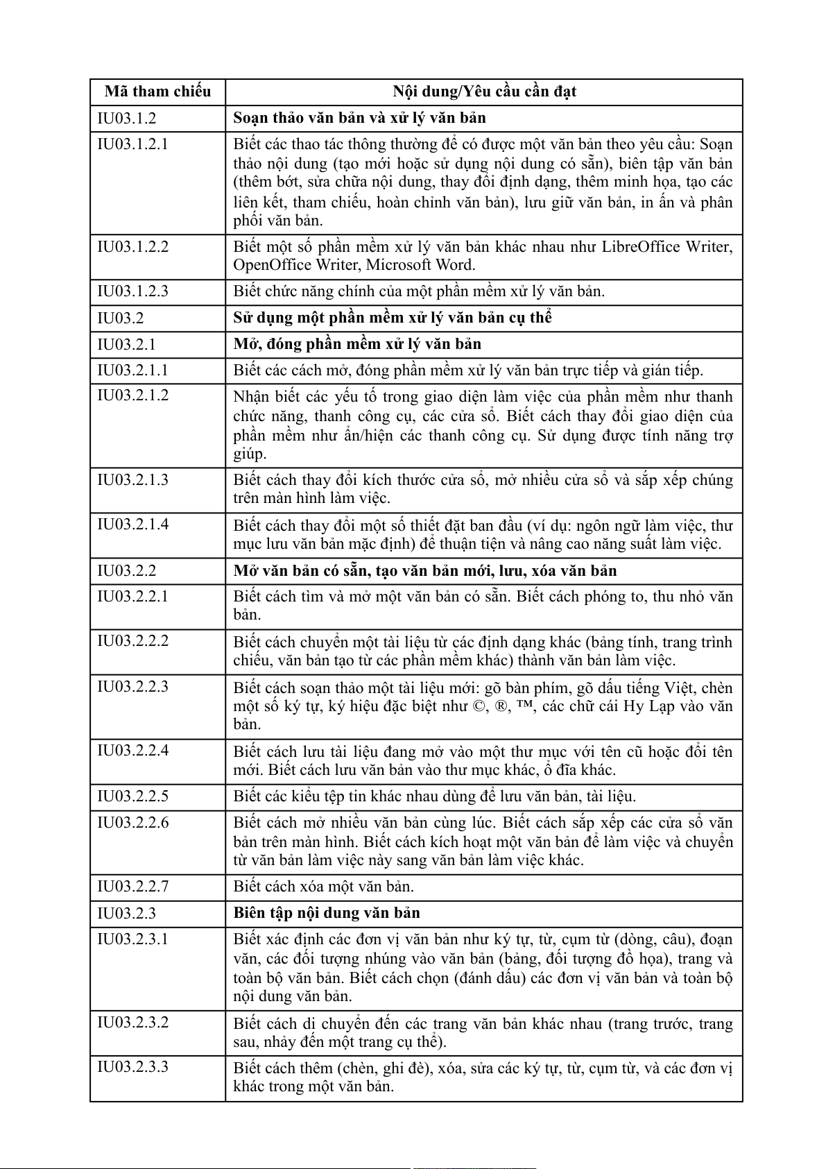 Nội dung/Yêu cầu cần đạt IU06.3.2.1