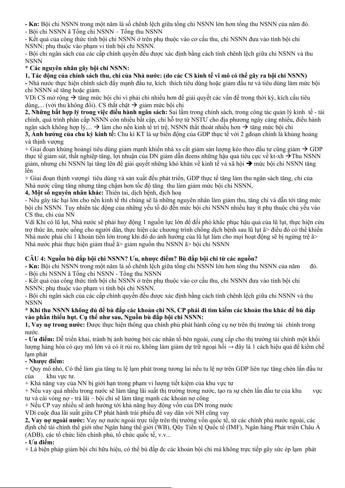 CÂU 4: Nguồn bù đắp bội chi NSNN? Ưu, nhược điểm? Bù đắp bội chi từ các nguồn?