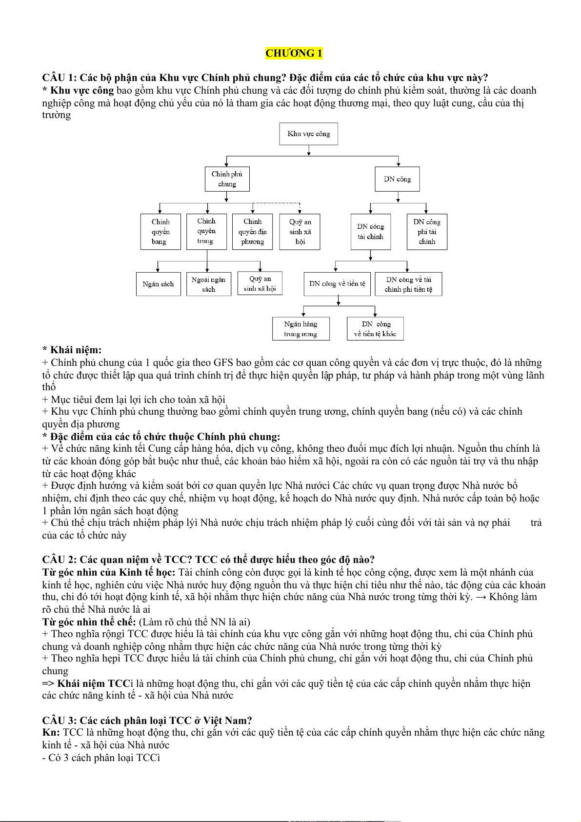 CÂU 1: Các bộ phận của Khu vực Chính phủ chung? Đặc điểm của các tổ chức của khu vực này?