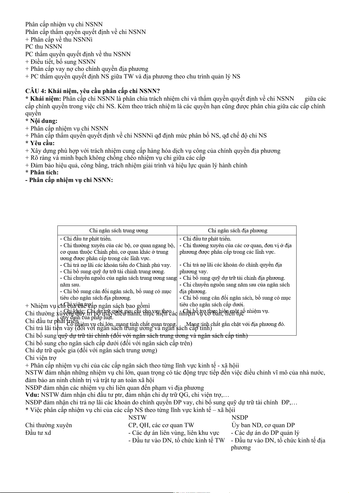 + Chi NSTƯ và chi NSĐP cấp tỉnh ko bao gồm chi trả nợ gốc