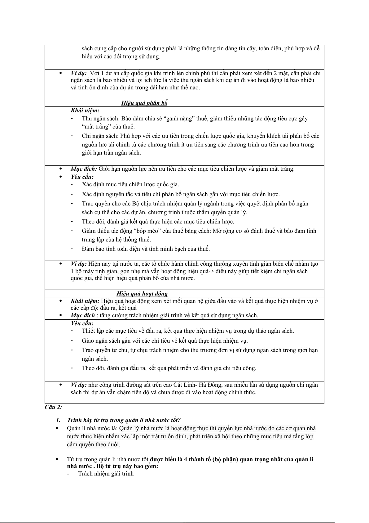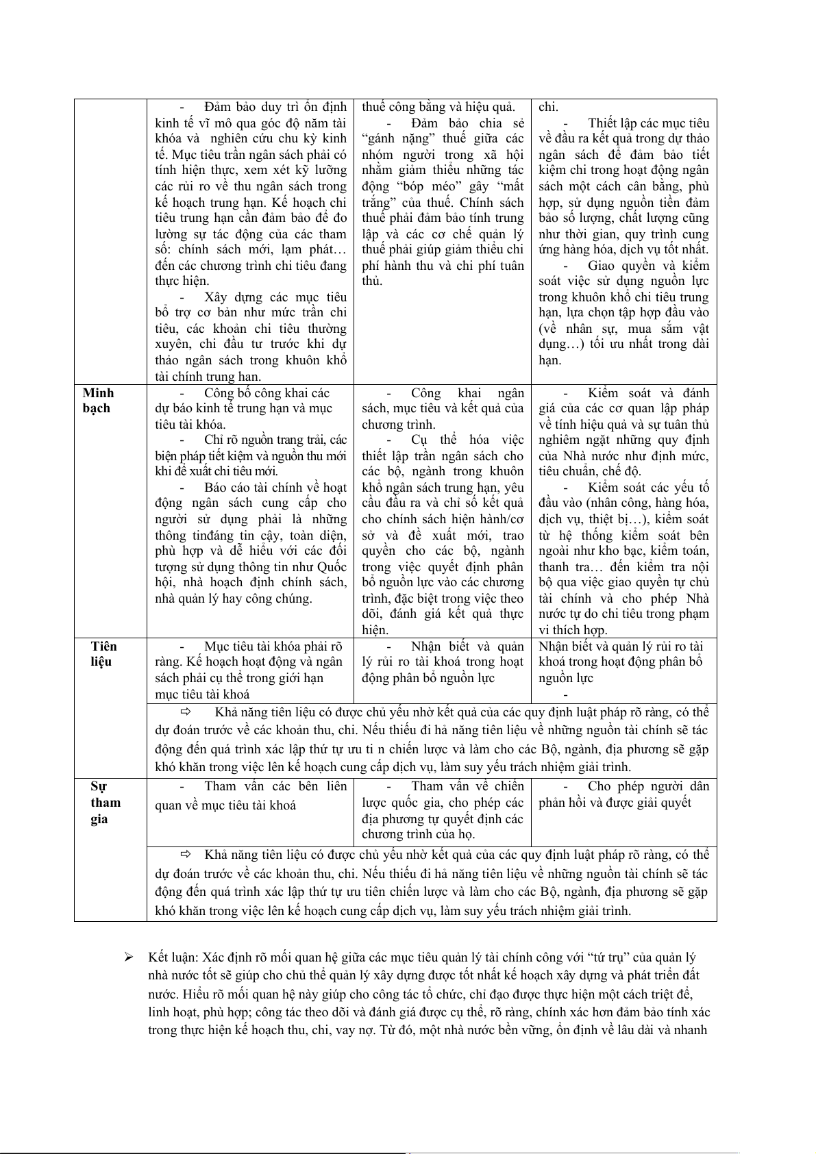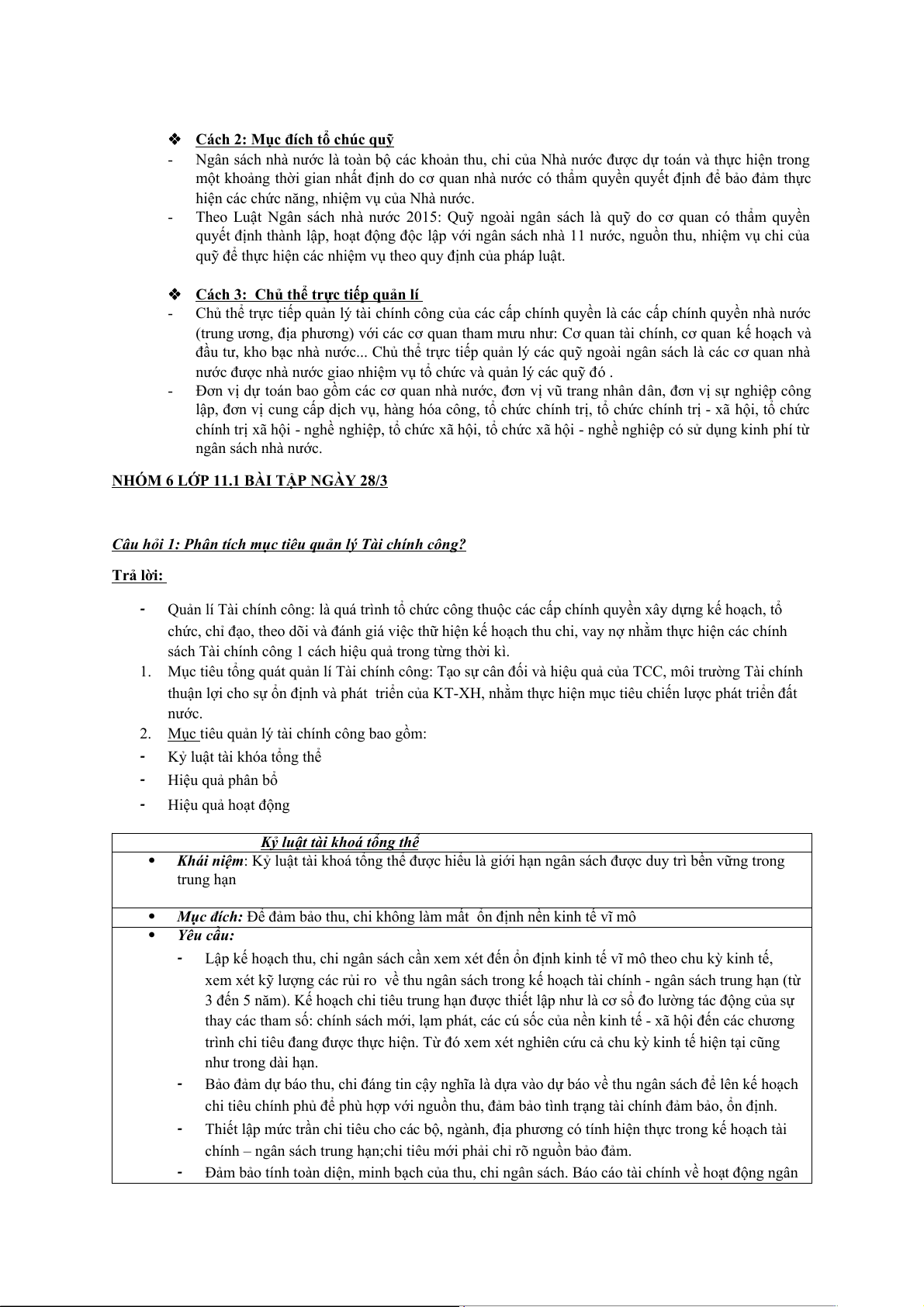 Câu hỏi 1: Phân tích mục tiêu quản lý Tài chính công? Trả lời: -