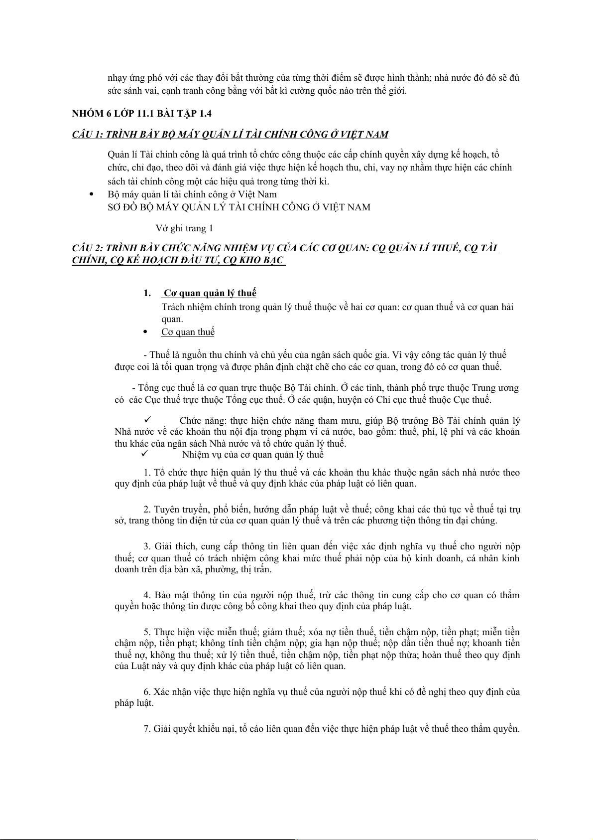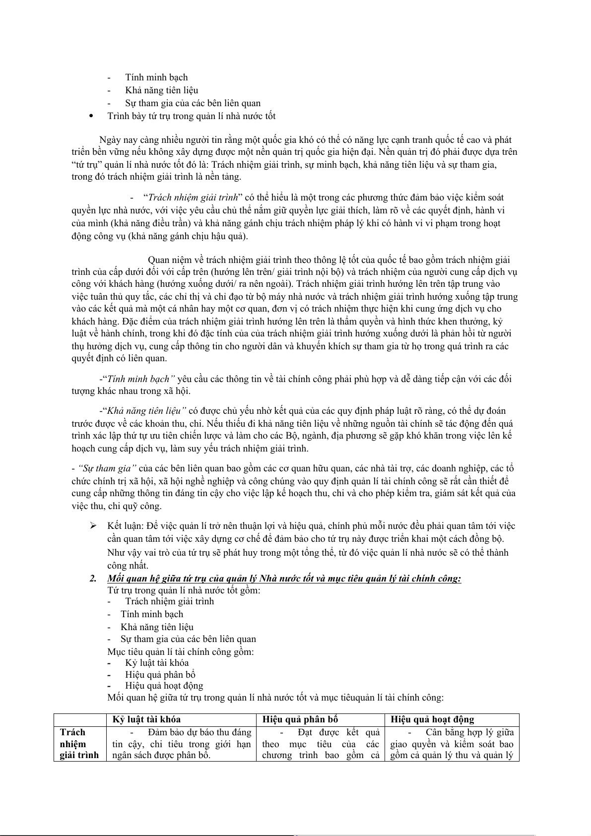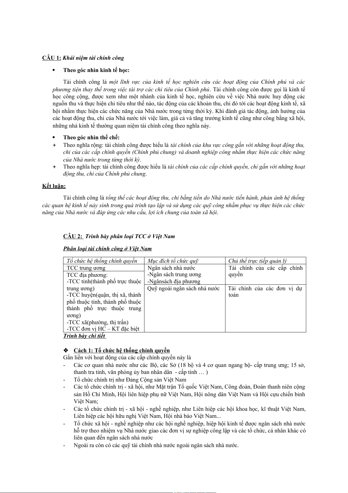 Câu hỏi 1: Phân tích mục tiêu quản lý Tài chính công? Trả lời: -