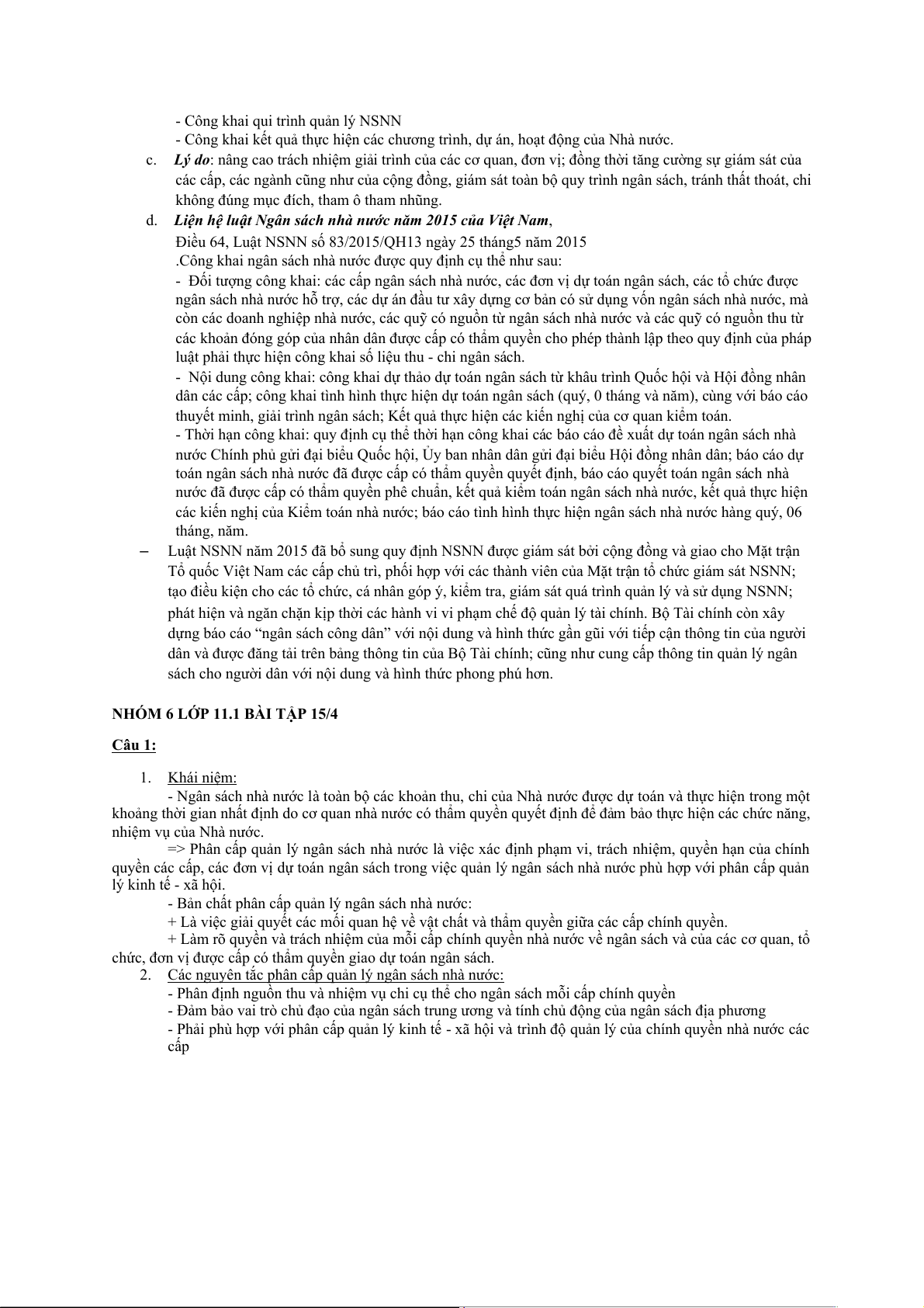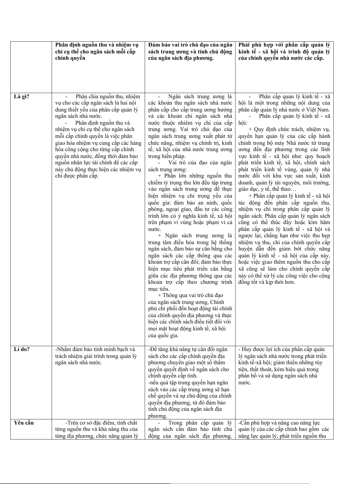 Câu 2: Trình bày các nội dung phân cấp quản lí NSNN 1. Khái niệm