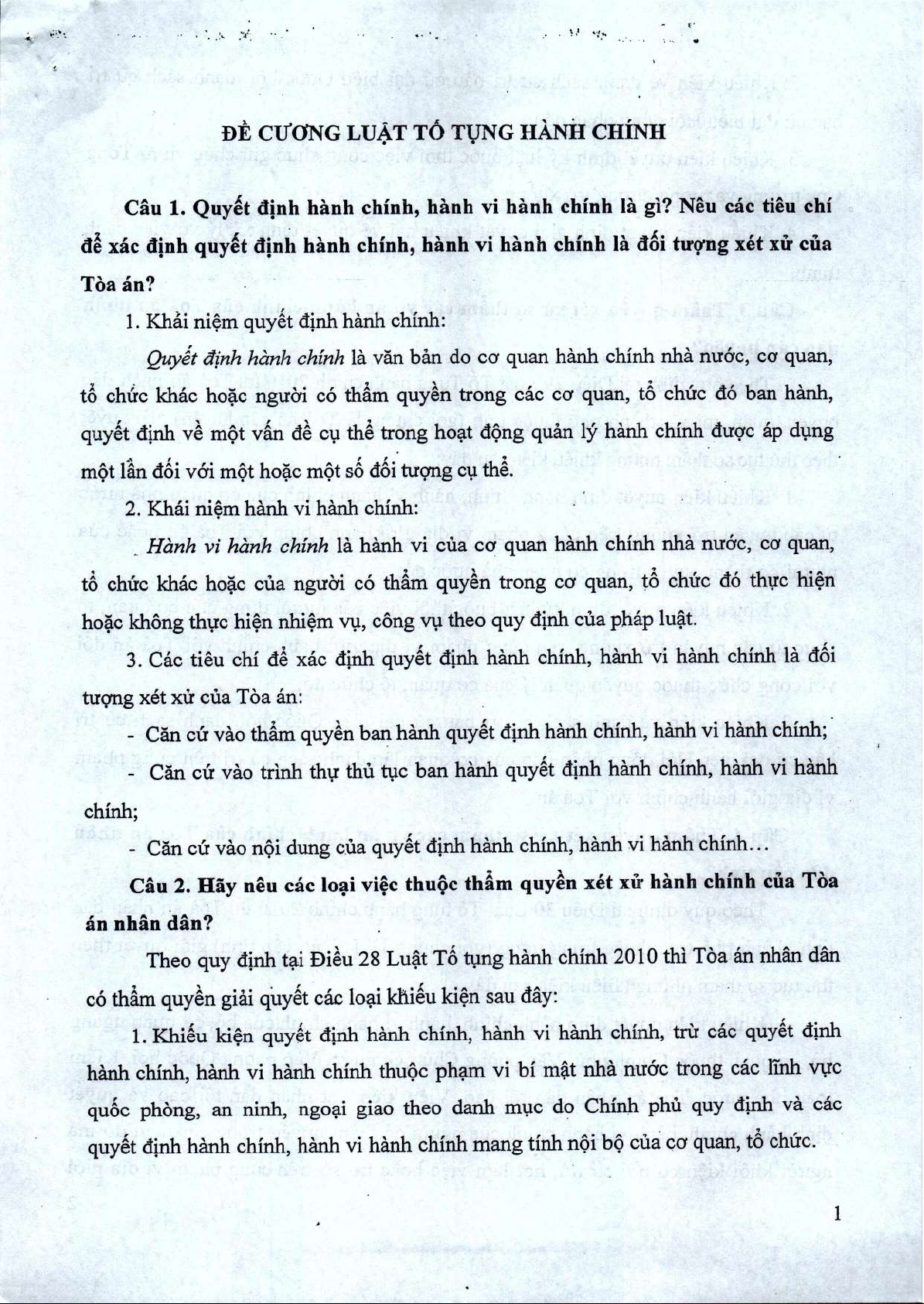 Đề cương ôn tập nhận định môn Luật tố tụng hành chính | Trường Đại học Luật Thành phố Hồ Chí Minh