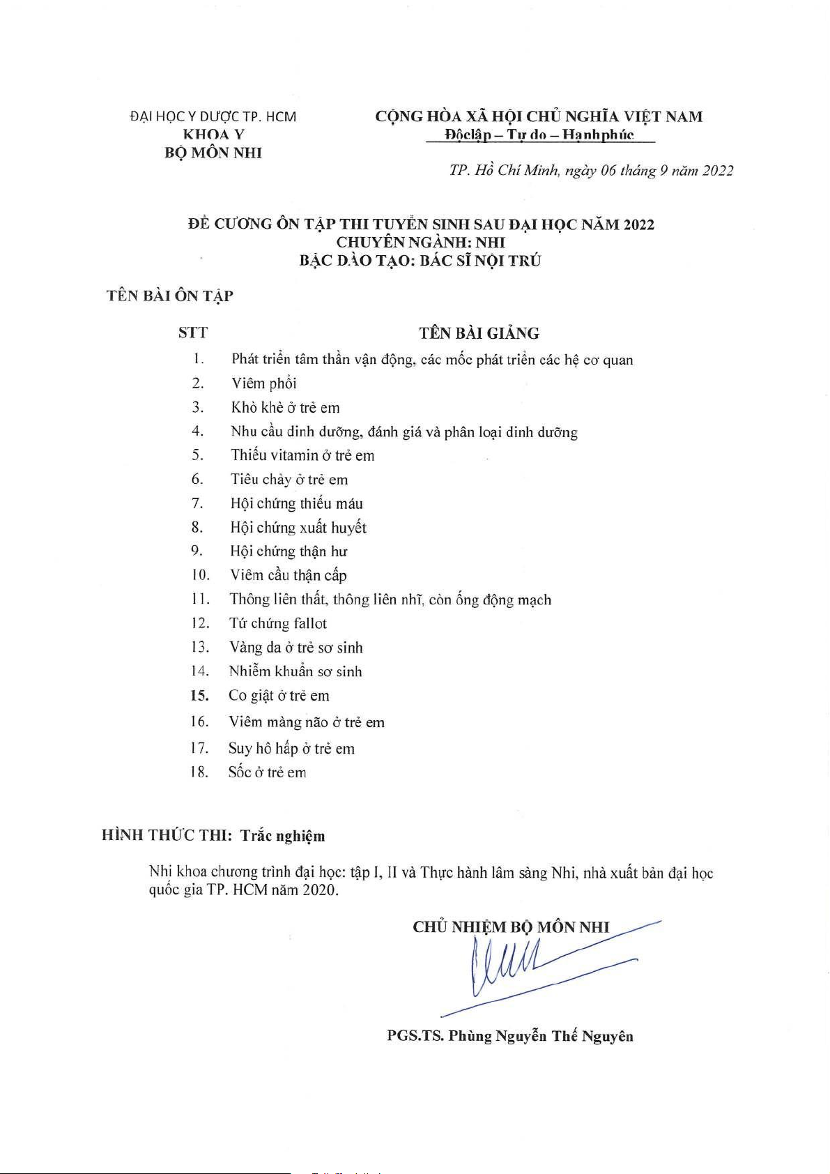 Đề cương thi Nhi khoa | Đại học Y khoa thành phố Hồ Chí Minh