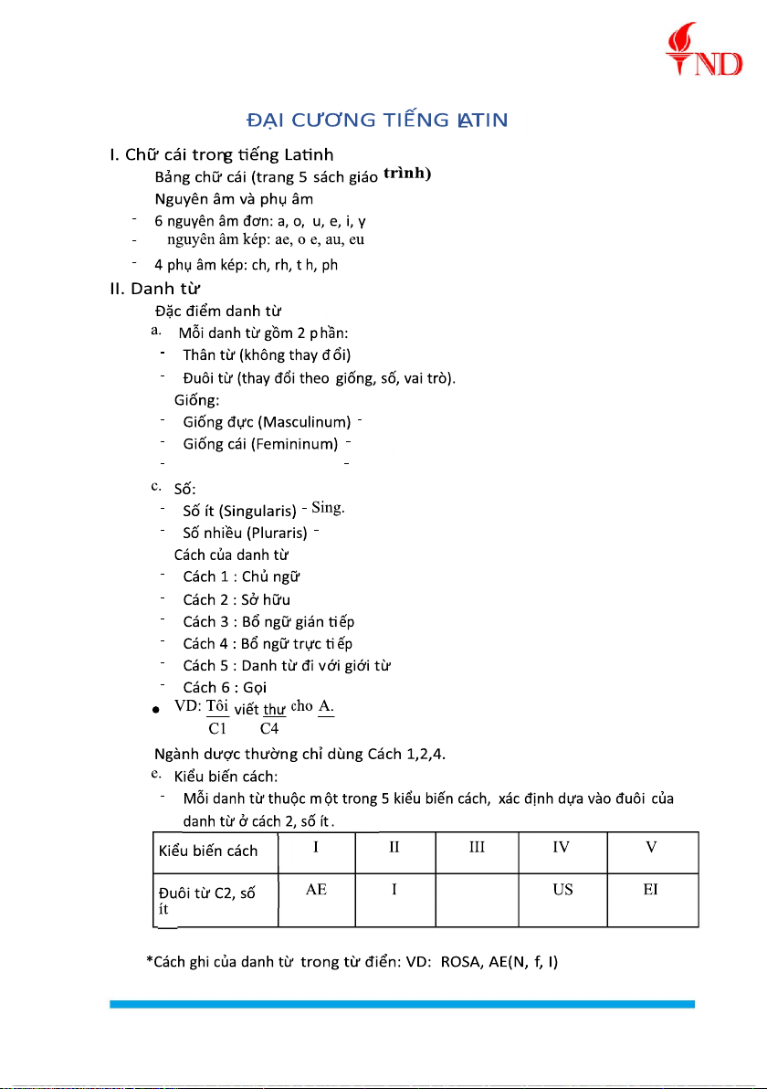 VITAMIN DƯỢC - TEAM HỌC TẬP TND 4 lOMoAR cPSD| 59062190 “N”: danh từ. Cách Số nhiều 1 2 3 4 5